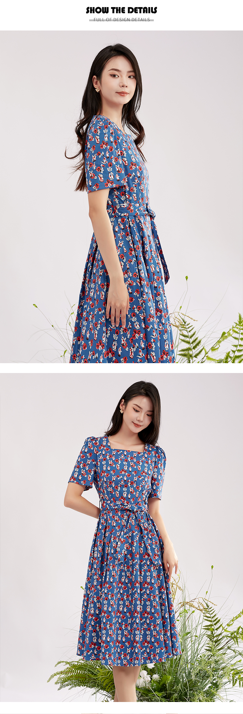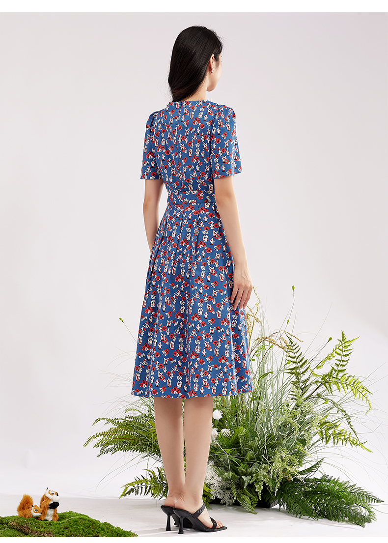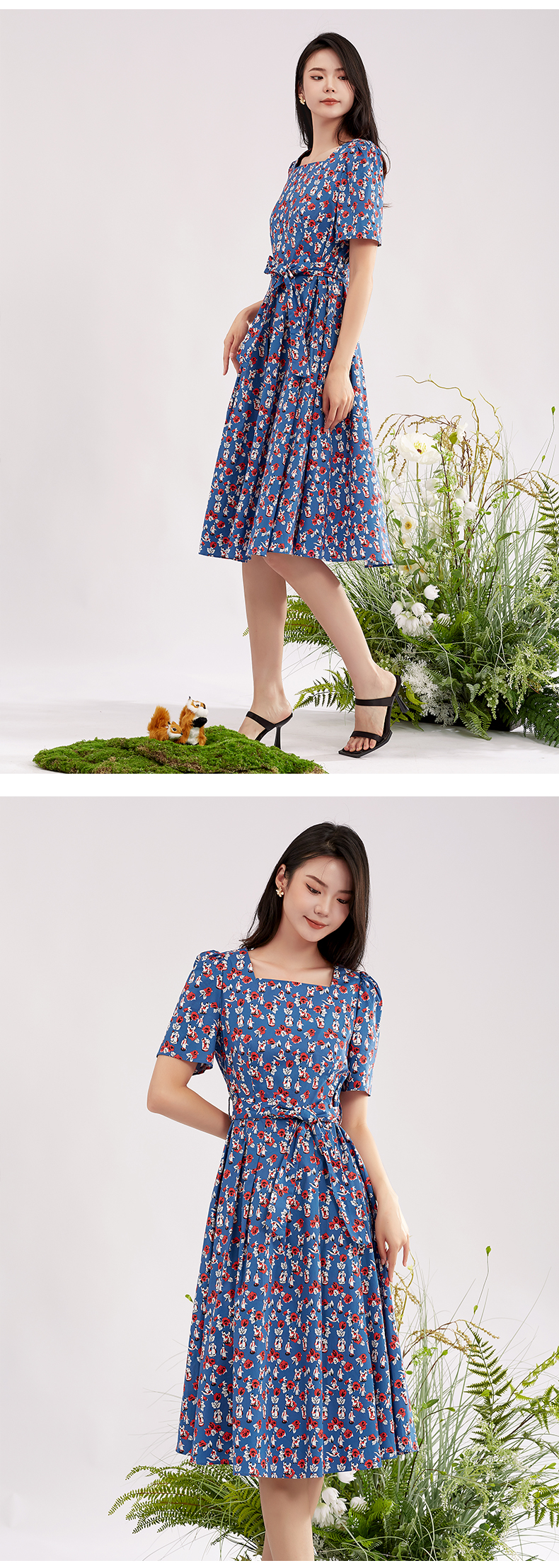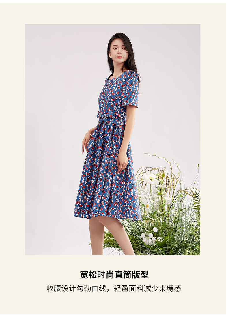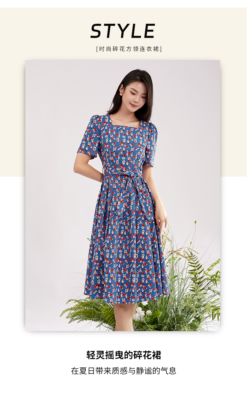 【商场同款】阿菁娜方领碎花时尚百搭连衣裙A28X112056