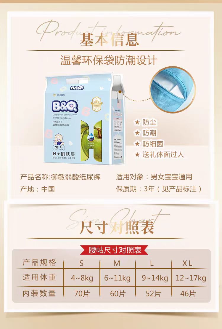 【整箱购:两箱/12包】B&Q贝奇 铂金装PH5.5 御敏弱酸纸尿裤(购满358元参与:1元报名送358元乳铁蛋白)