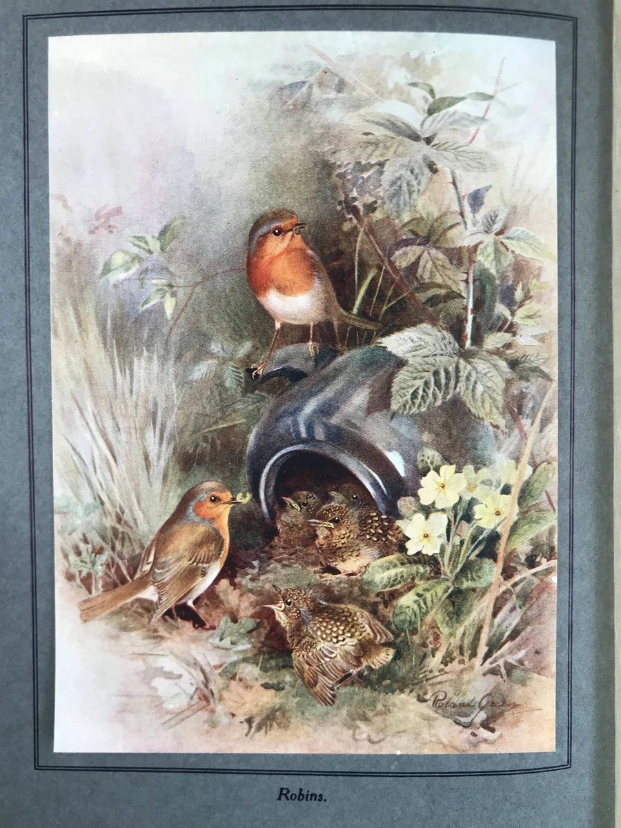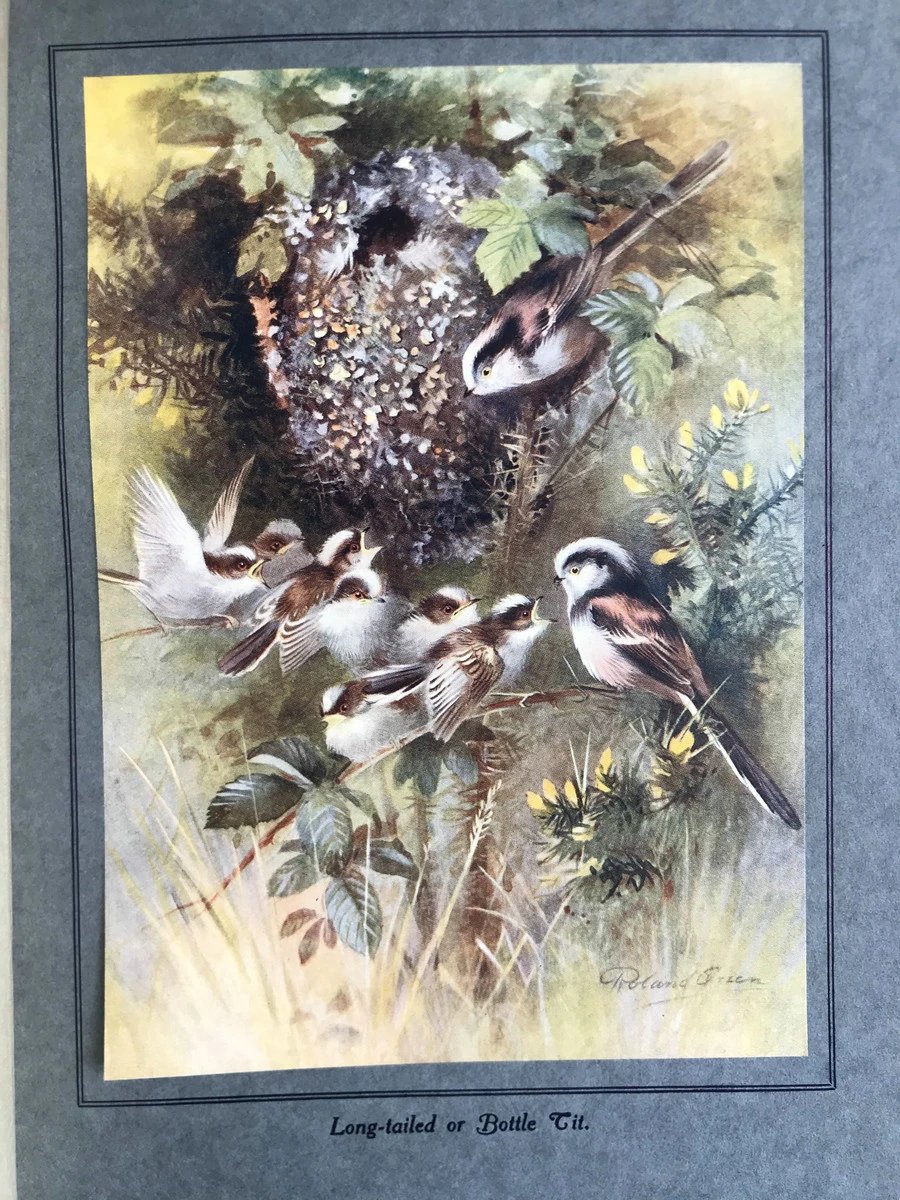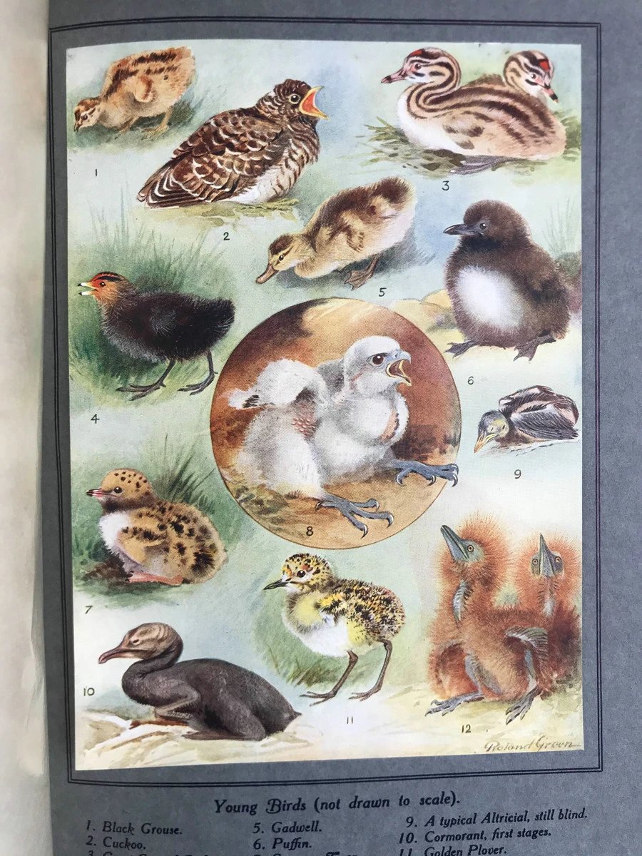 1923年 幼年鸟类图集 12幅彩色手工贴图与大量黑白插图 布面精装16开