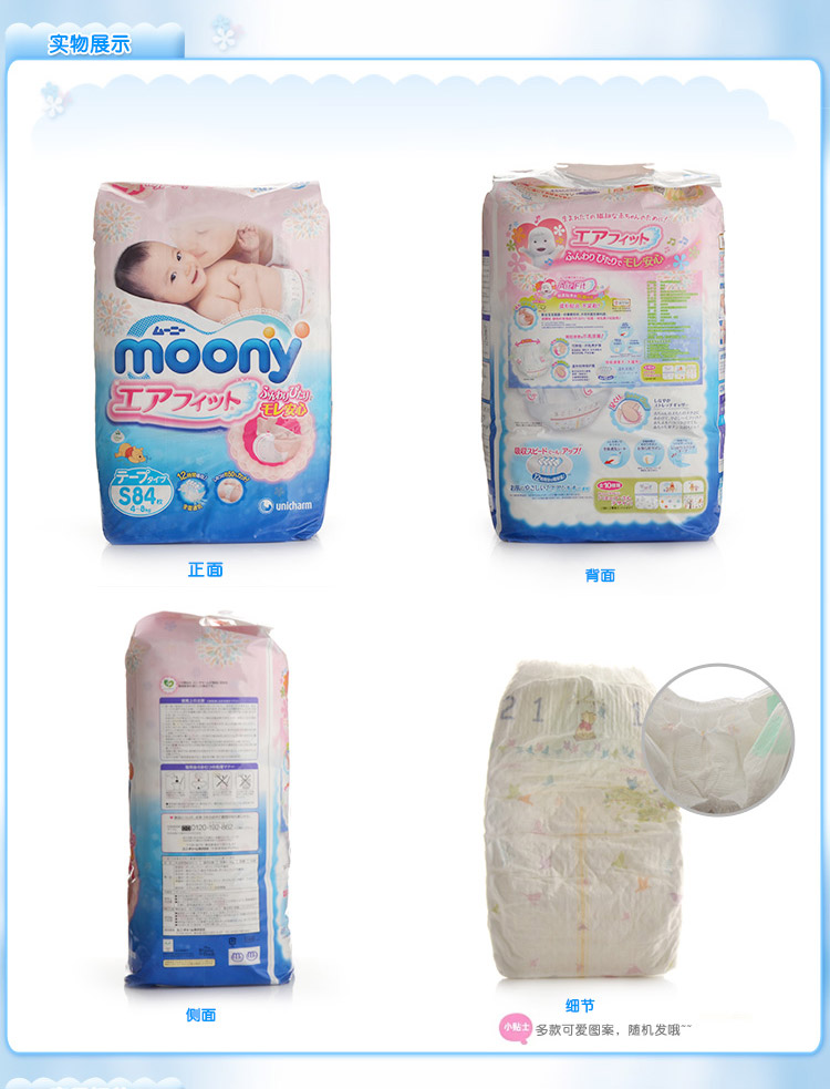 日本尤妮佳(moony)纸尿裤 小号S84片【4-8kg】