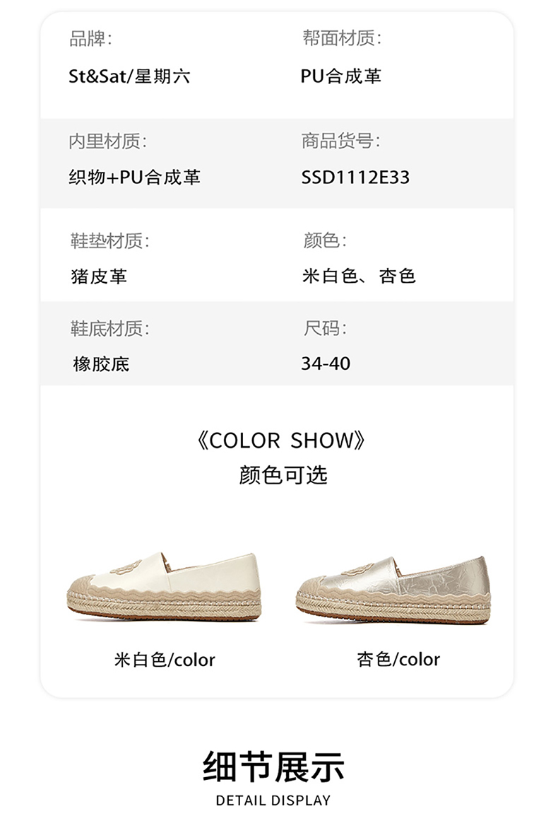 星期六小香风刺绣山茶花休闲渔夫鞋SSD1112E33