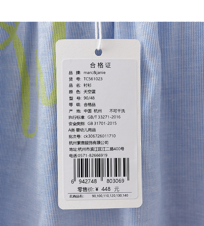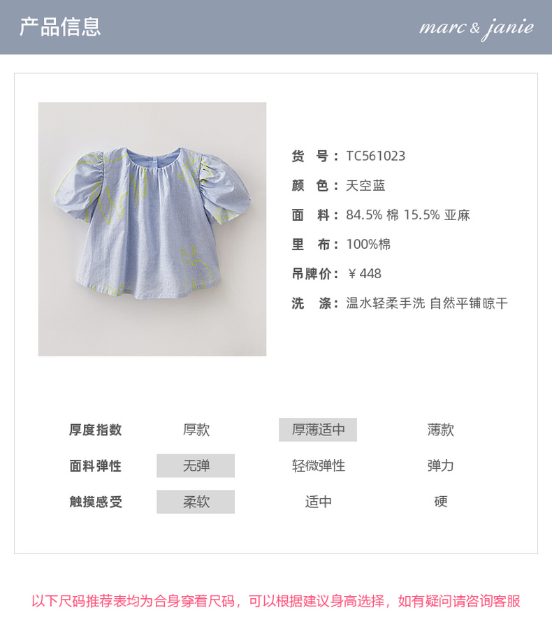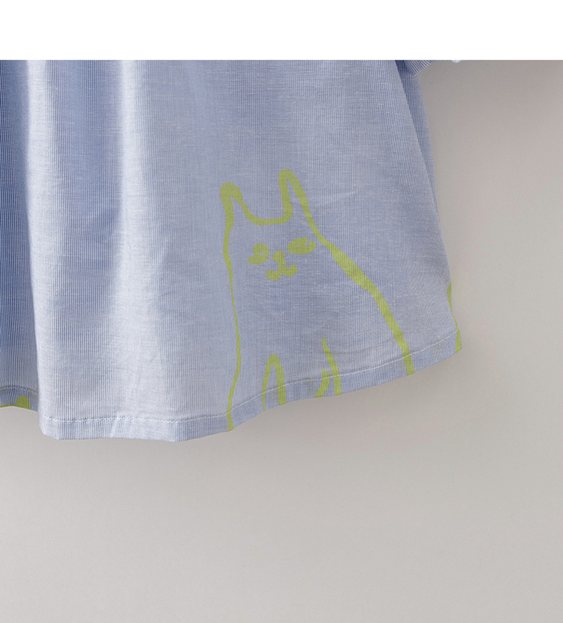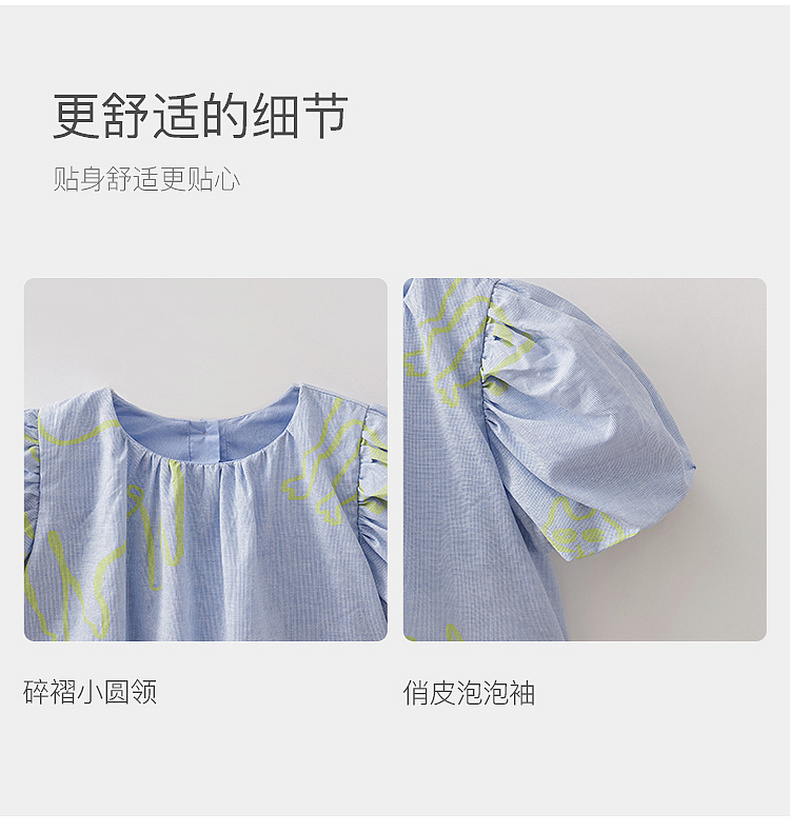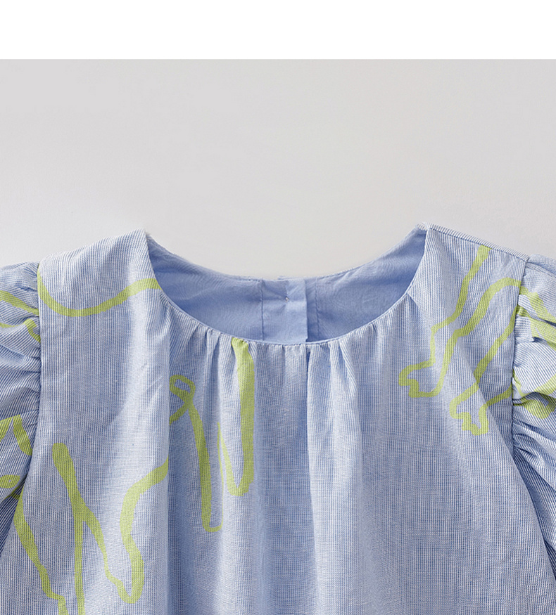 马克珍妮猫咪涂鸦女童花苞袖亚麻小衫2026年夏装新款561023