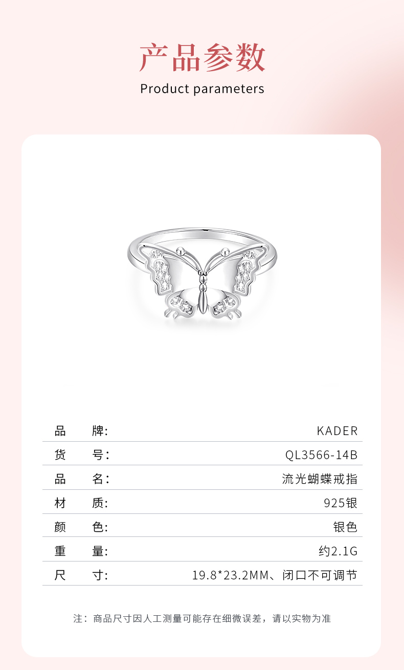 【招财蝴蝶】卡蒂罗/KADER 光影蝴蝶女戒 闭口 流光蝴蝶闺蜜款女戒 闪闪蝶舞亚文化镜面设计冷淡风配饰闪耀吸睛