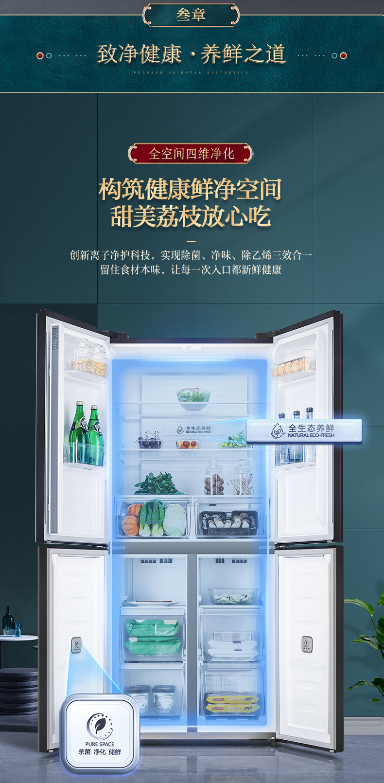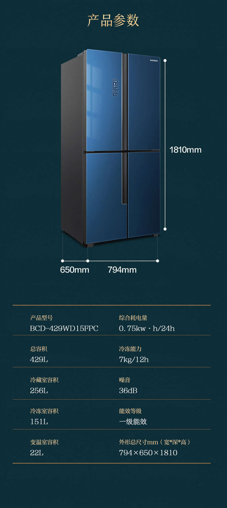 容声429L十字四门双开一级风冷变频无霜冰箱【LY】