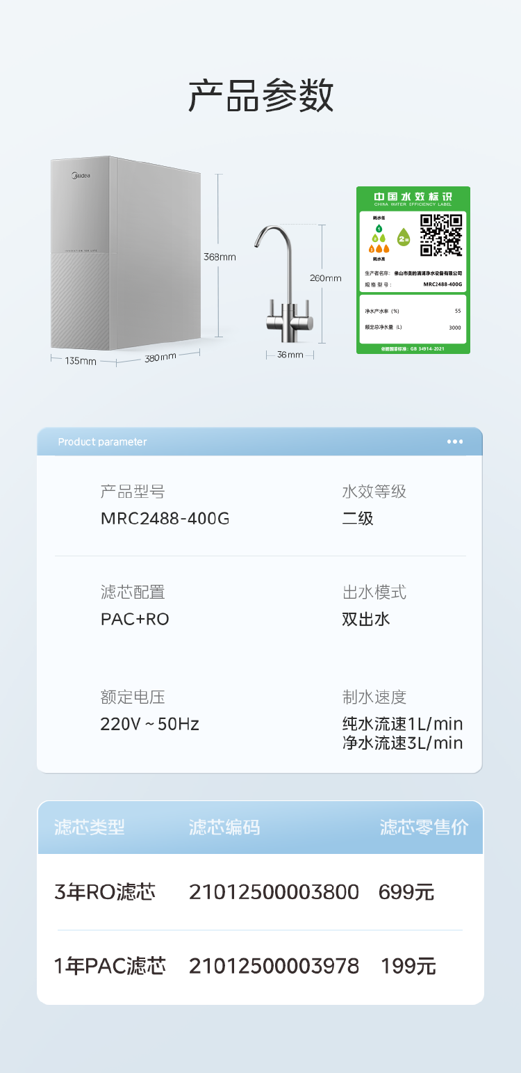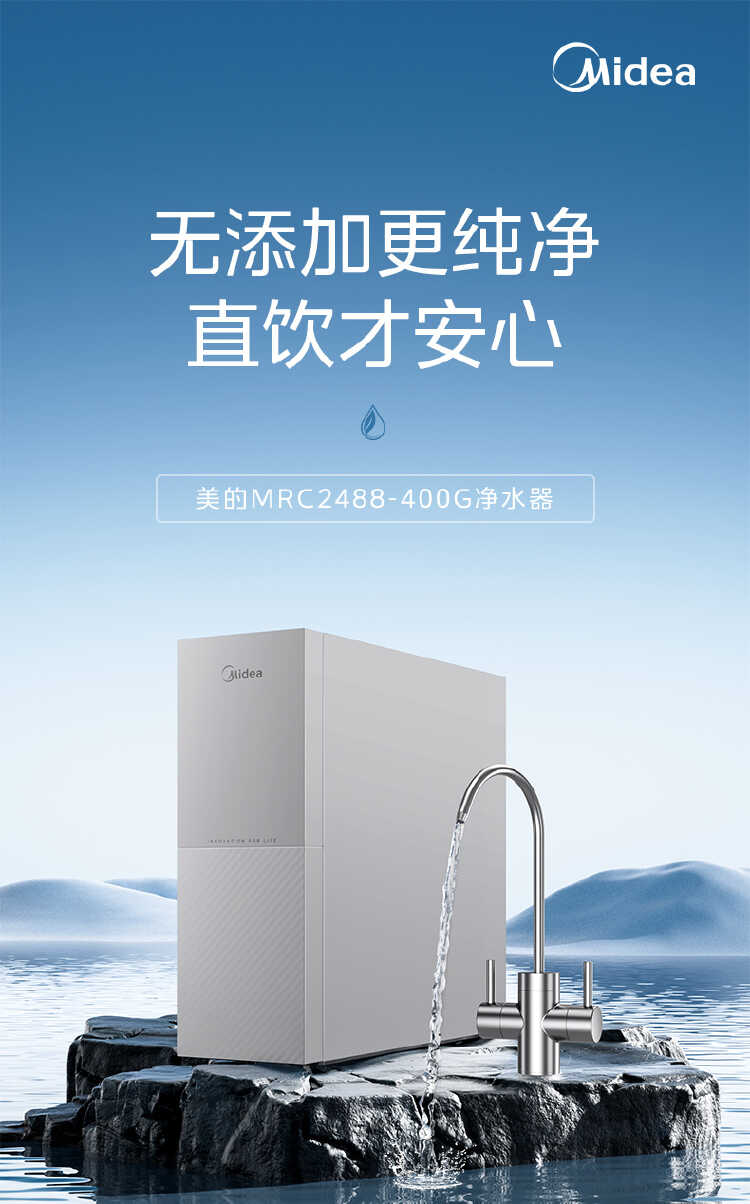美的(510825)MRC2488-400G橱下式净水机月岩灰双水无灯环龙头