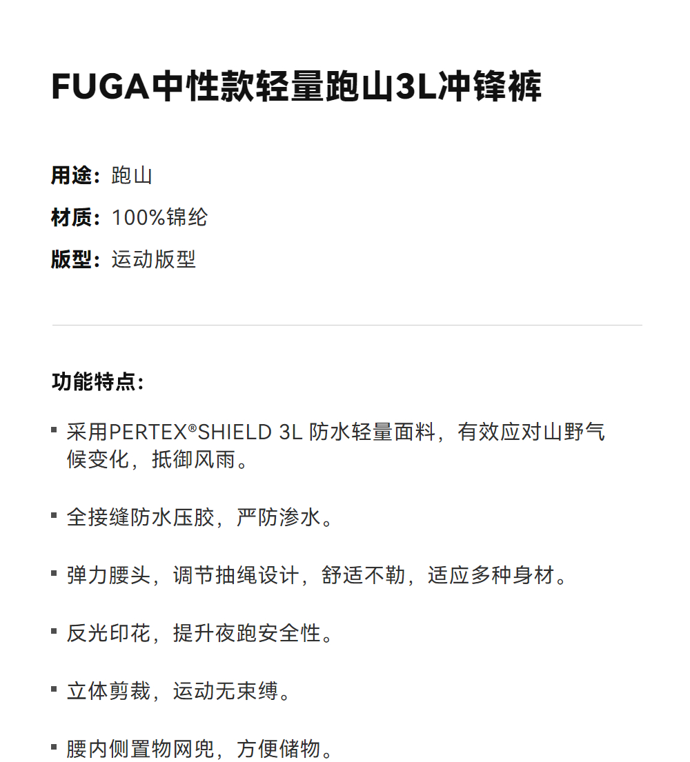 KAILAS凯乐石 FUGA中性款轻量跑山3L冲锋裤 KG2521311
