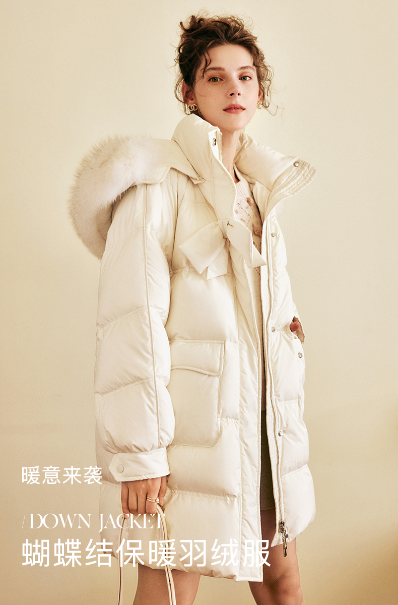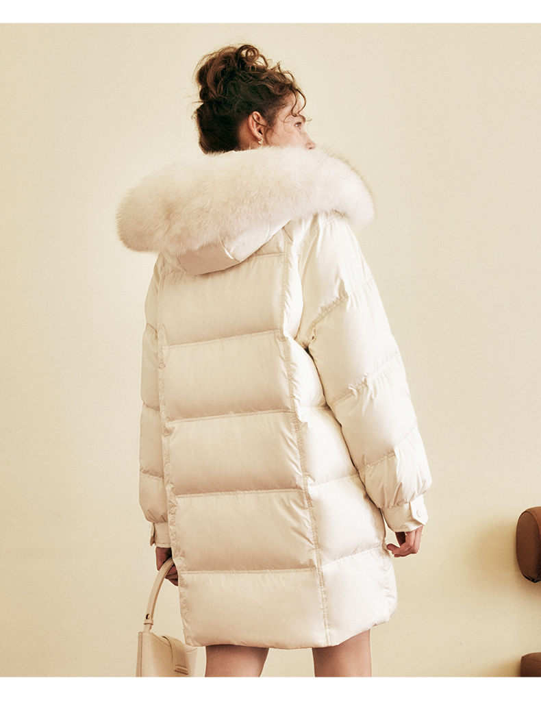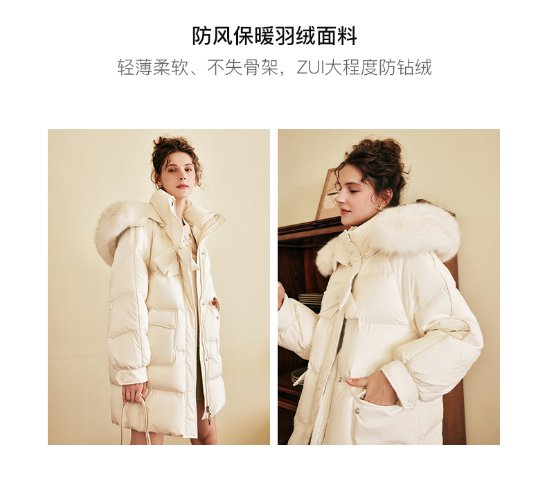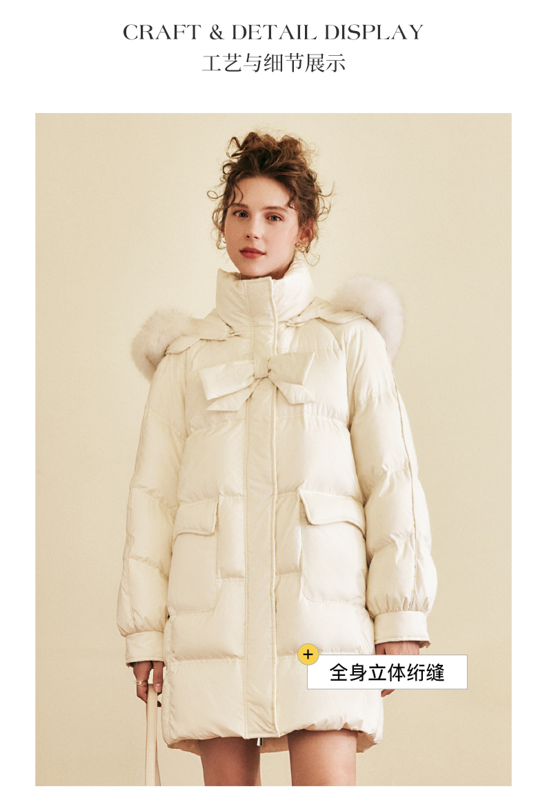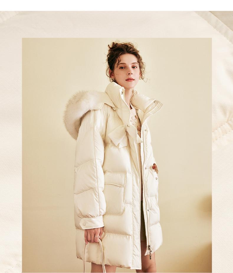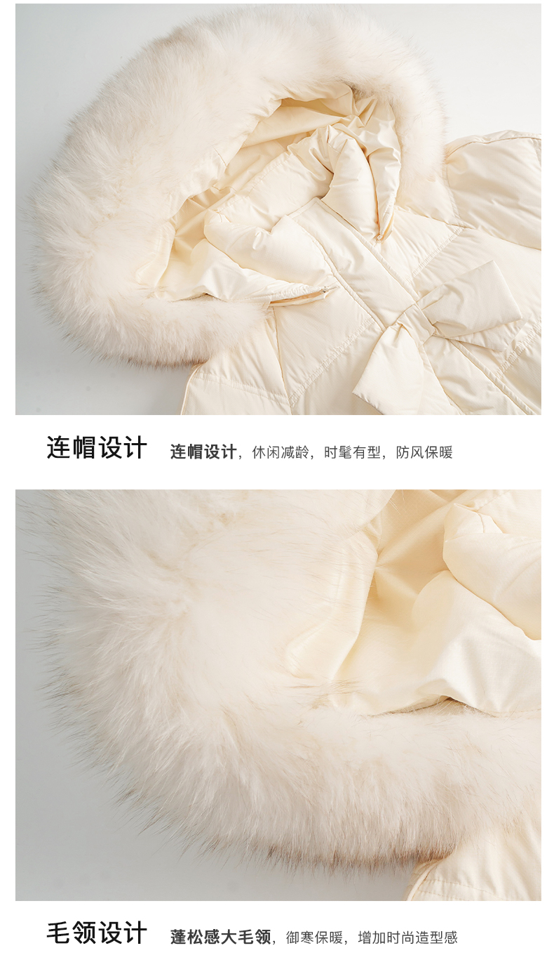 OLrain欧芮儿白色大毛领连帽羽绒服女中长款冬季2025新款高端外套