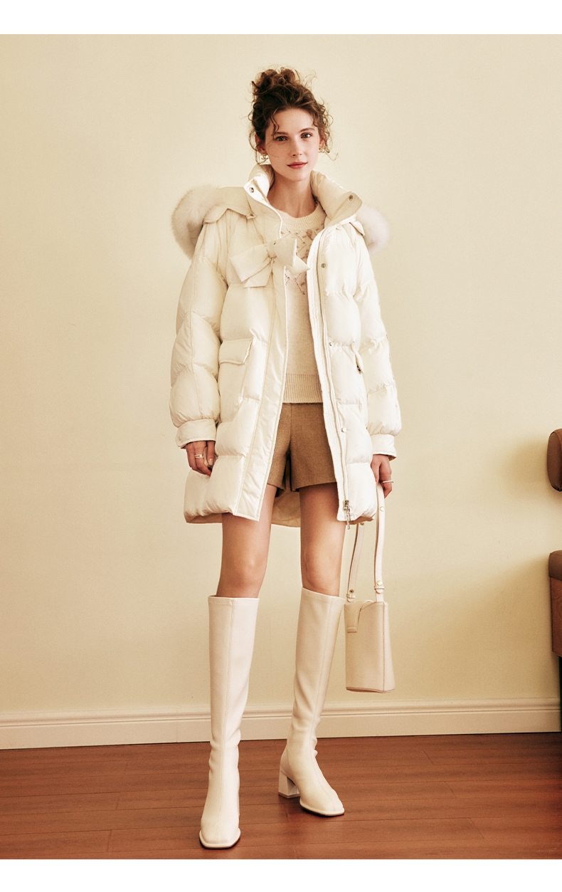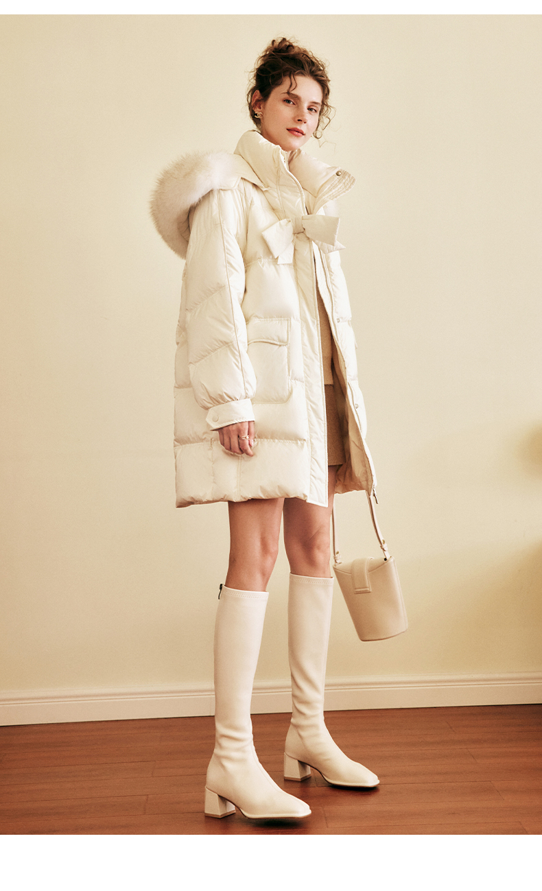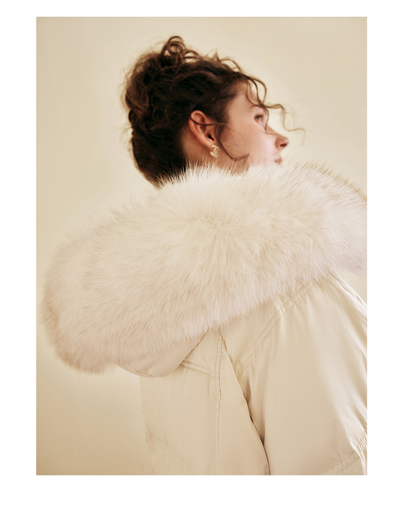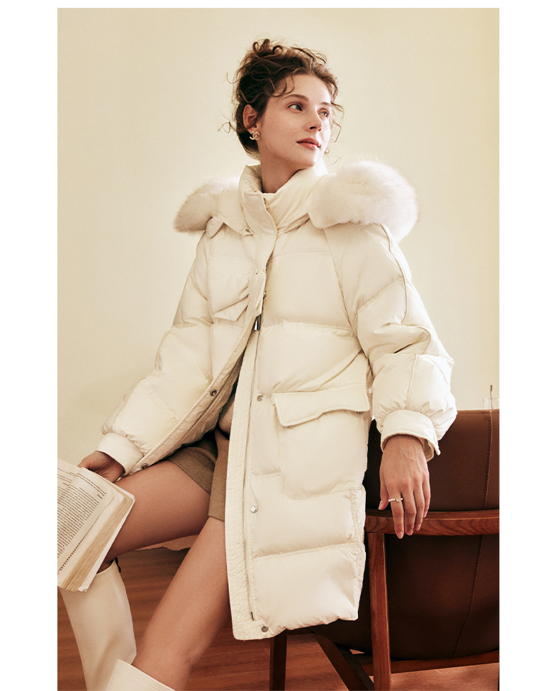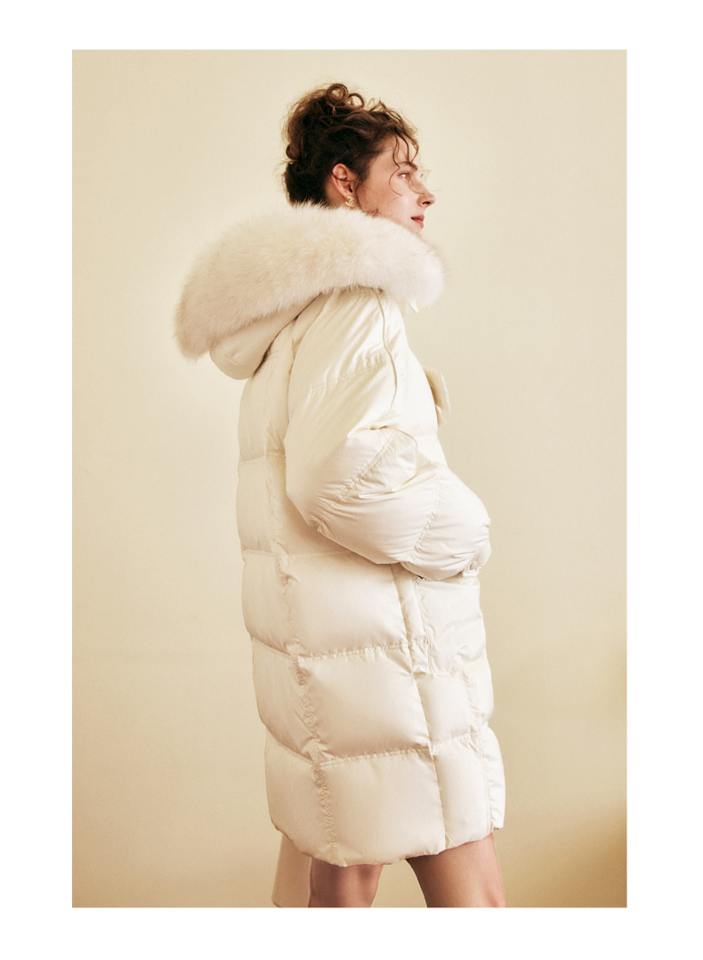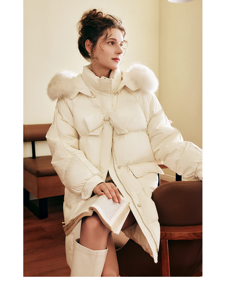 OLrain欧芮儿白色大毛领连帽羽绒服女中长款冬季2025新款高端外套