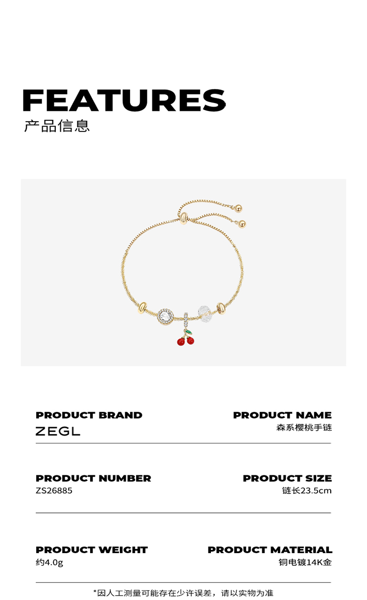 ZEGL红色小樱桃手链女生ins小众设计高级感新年闺蜜手饰生日礼物