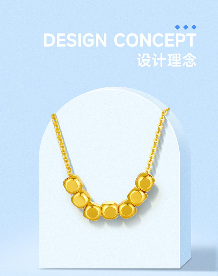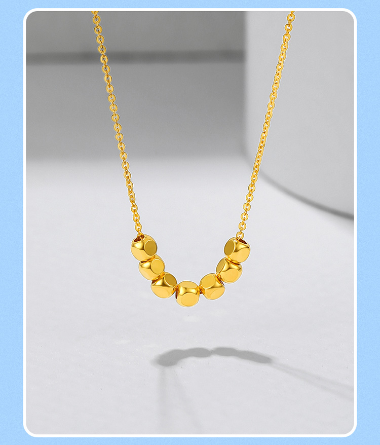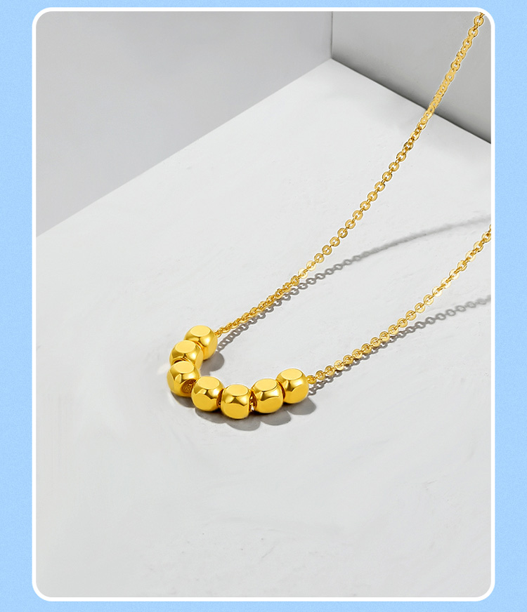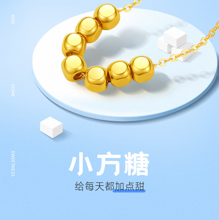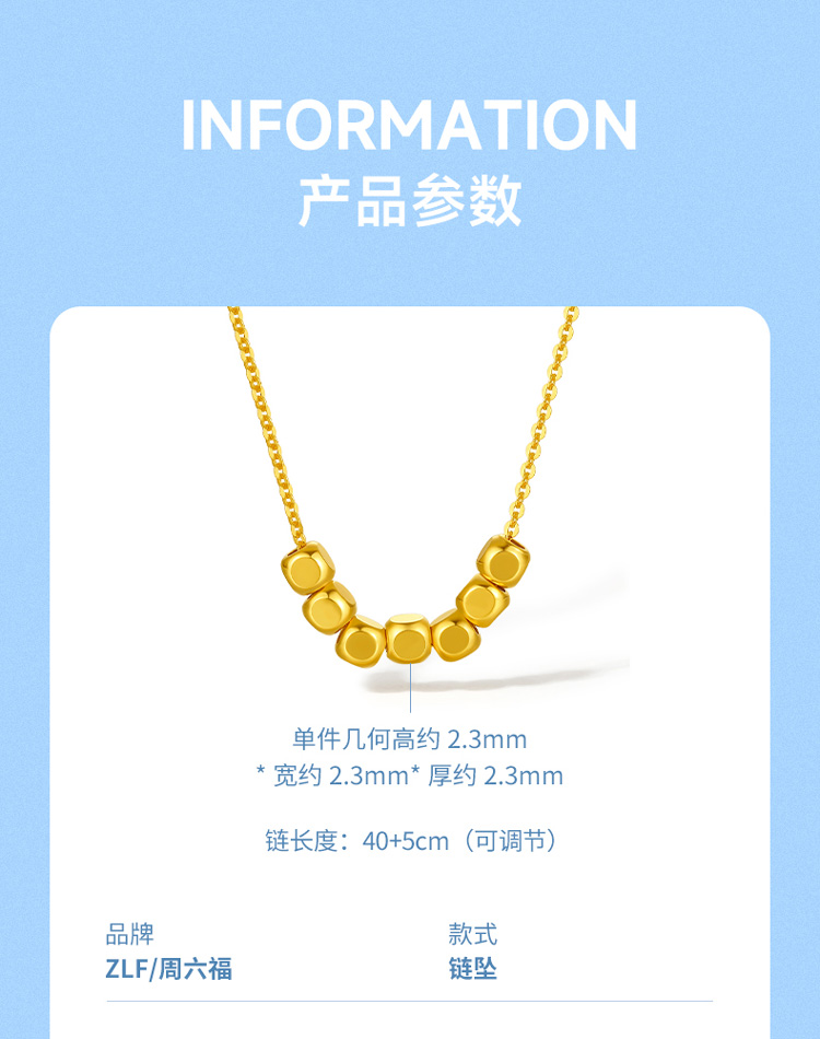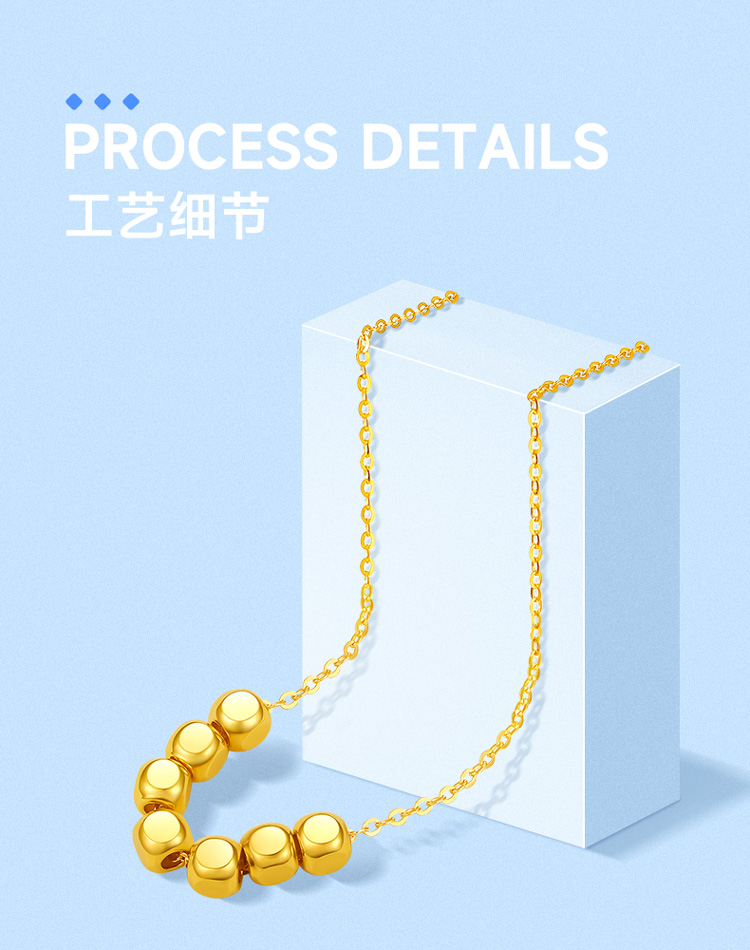周六福18K金项链女 七天小方糖转运珠 链长可调节多彩金气质女生