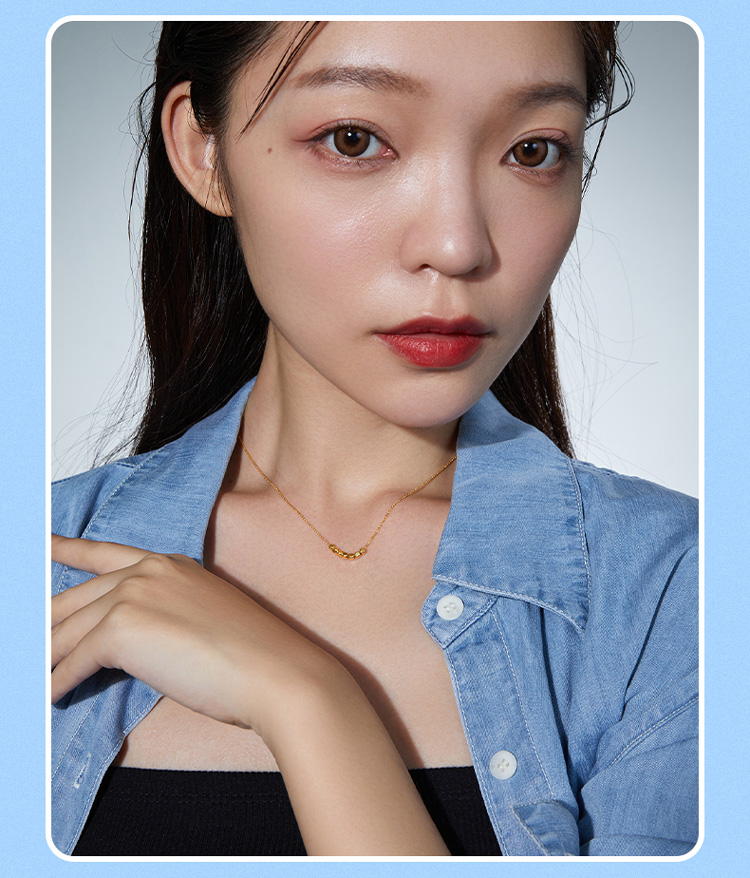 周六福 三色18K金肖邦链 锁骨链 多款可选项链 多彩