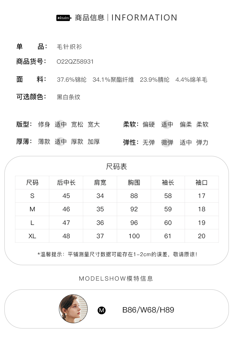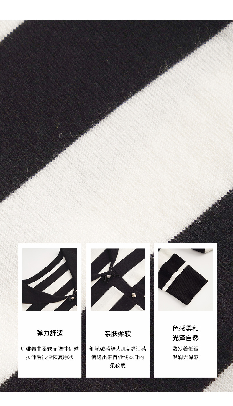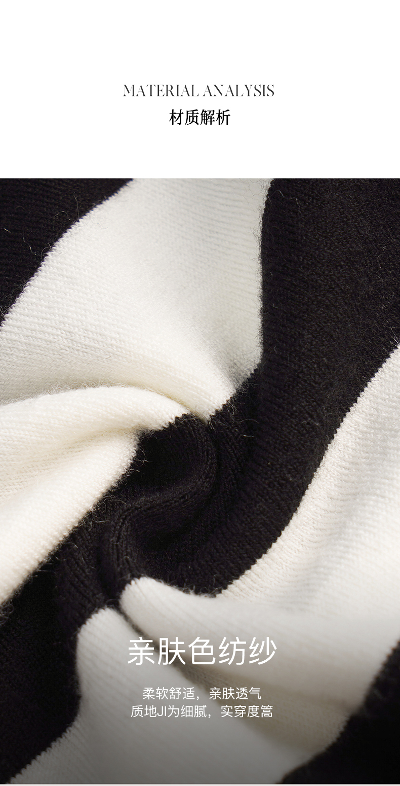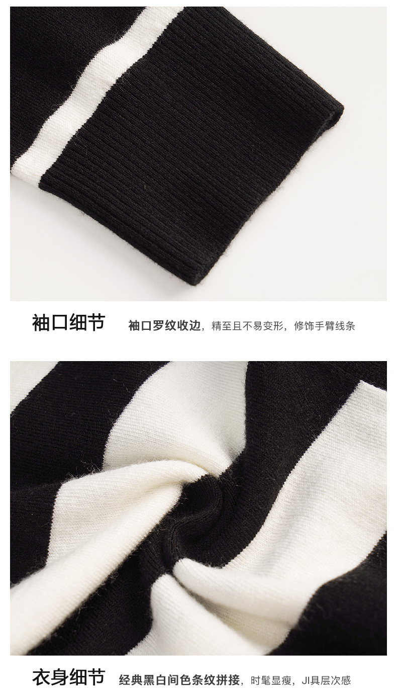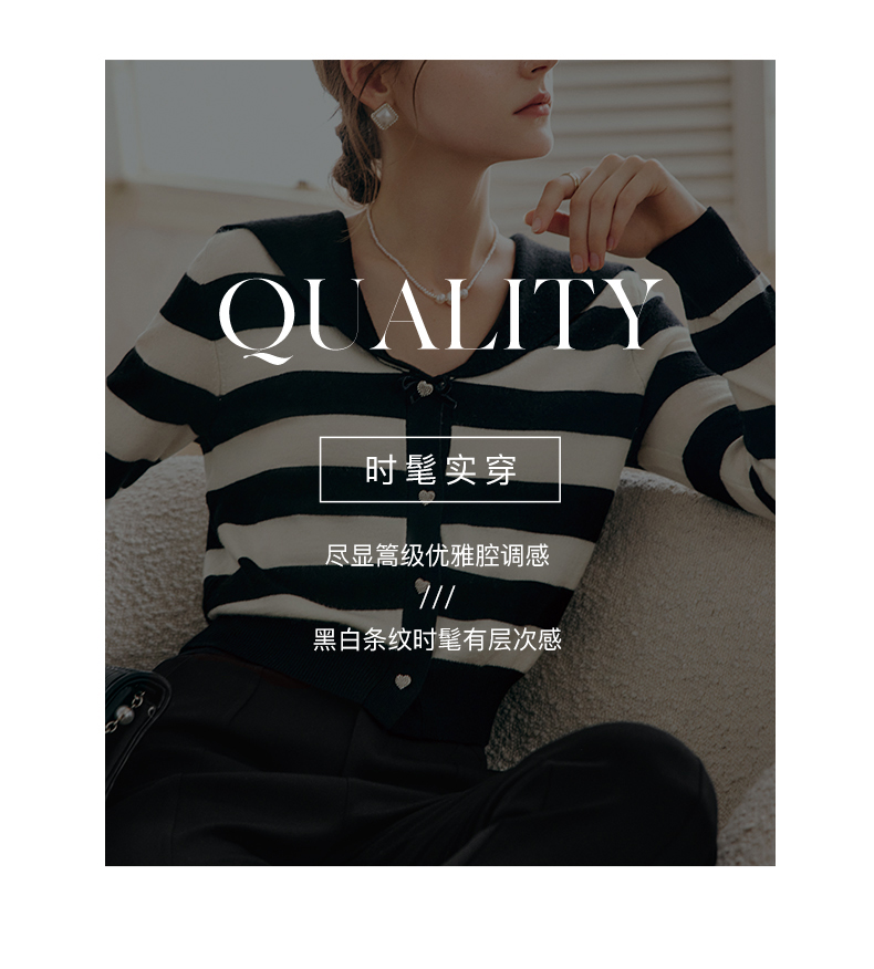 OLrain法式黑白条纹针织开衫女早秋2022年新款时尚修身海军领上衣