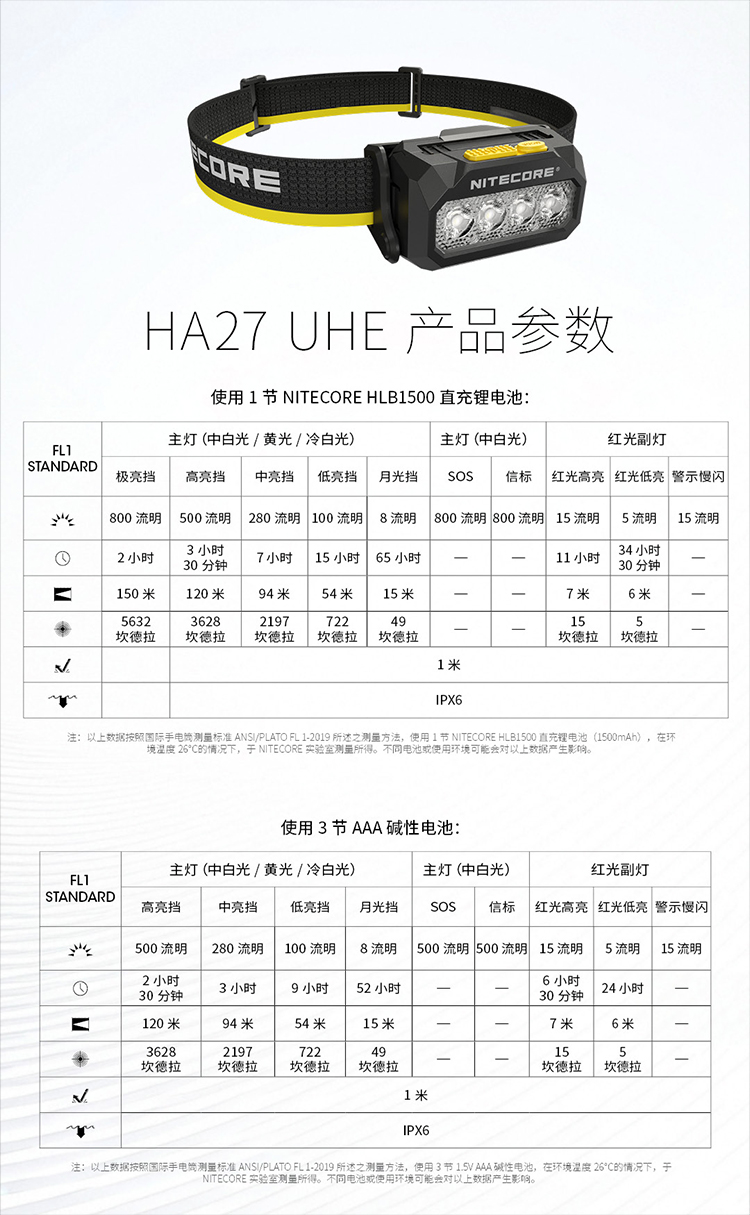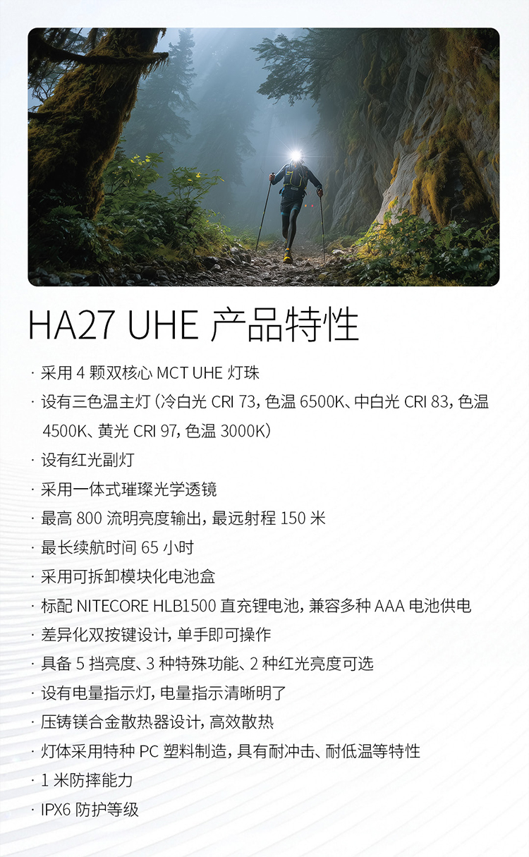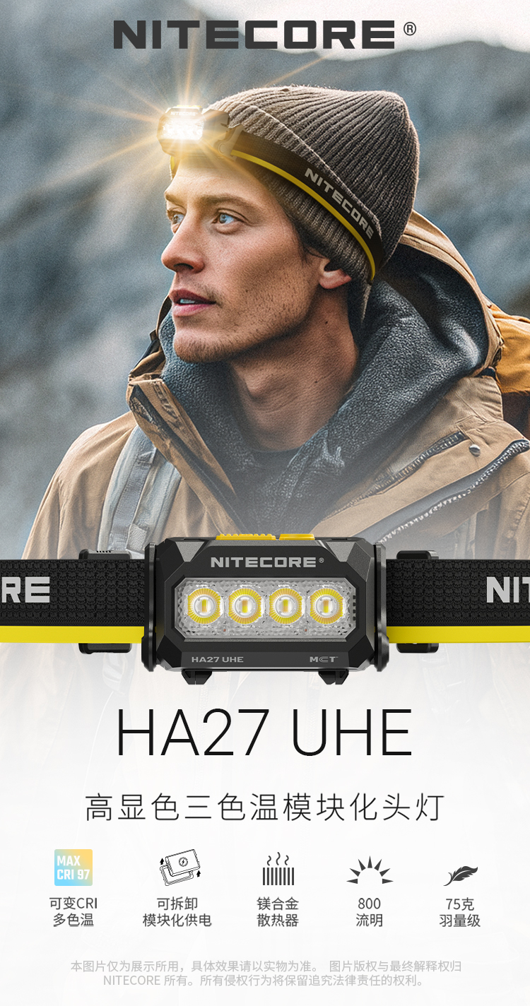 【2026新品】NITECORE奈特科尔HA27UHE户外登山头灯新款官方旗舰