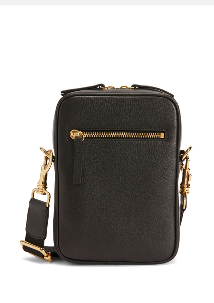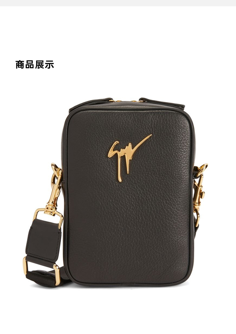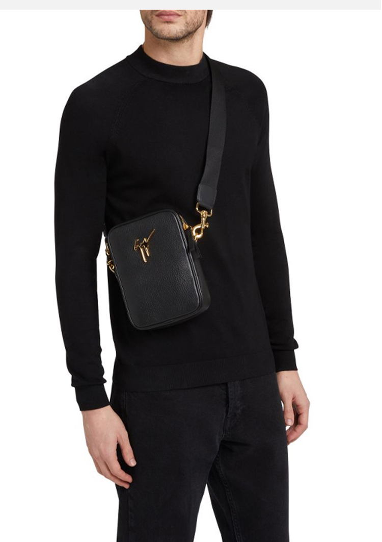 Giuseppe Zanotti 男士金属签字徽标鳄鱼纹皮革单肩包 黑色 IBU2009001
