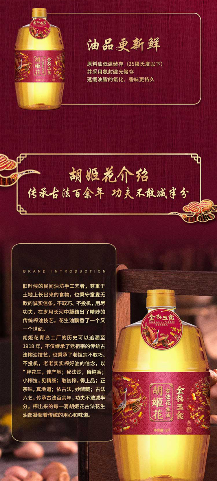 胡姬花金衣玉食古法花生油5L