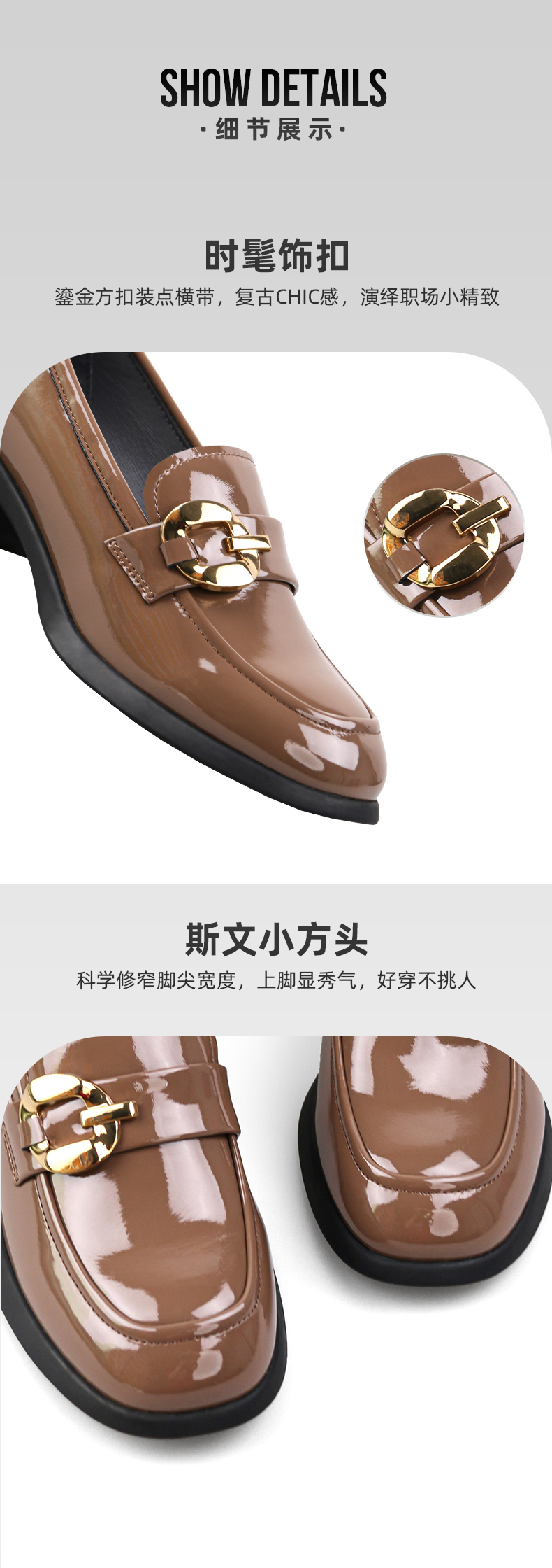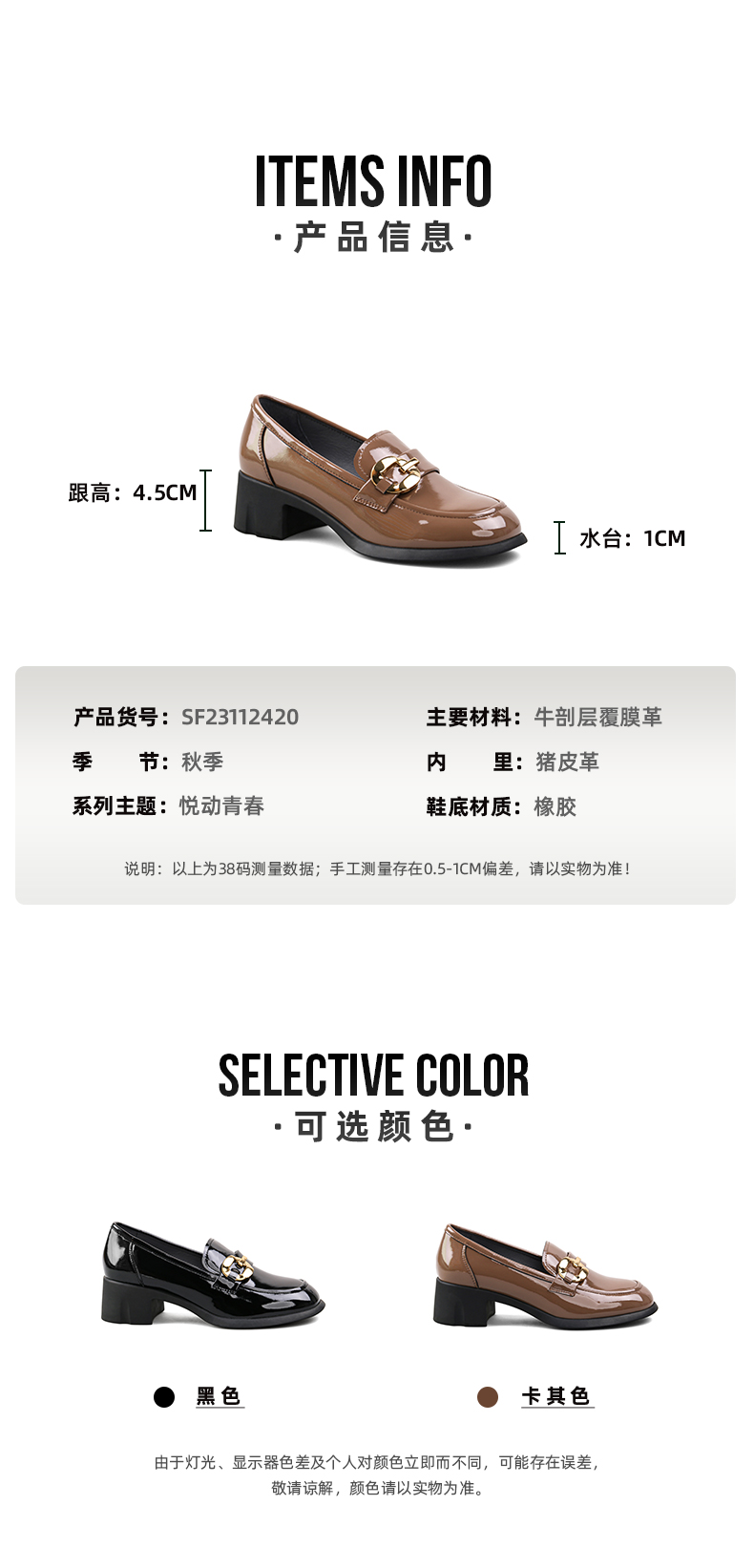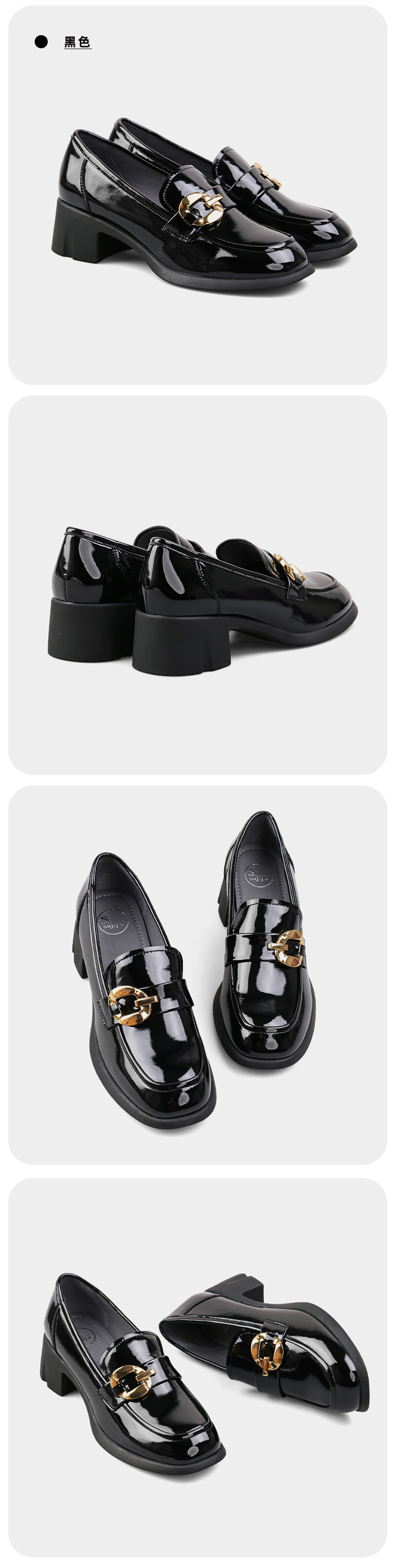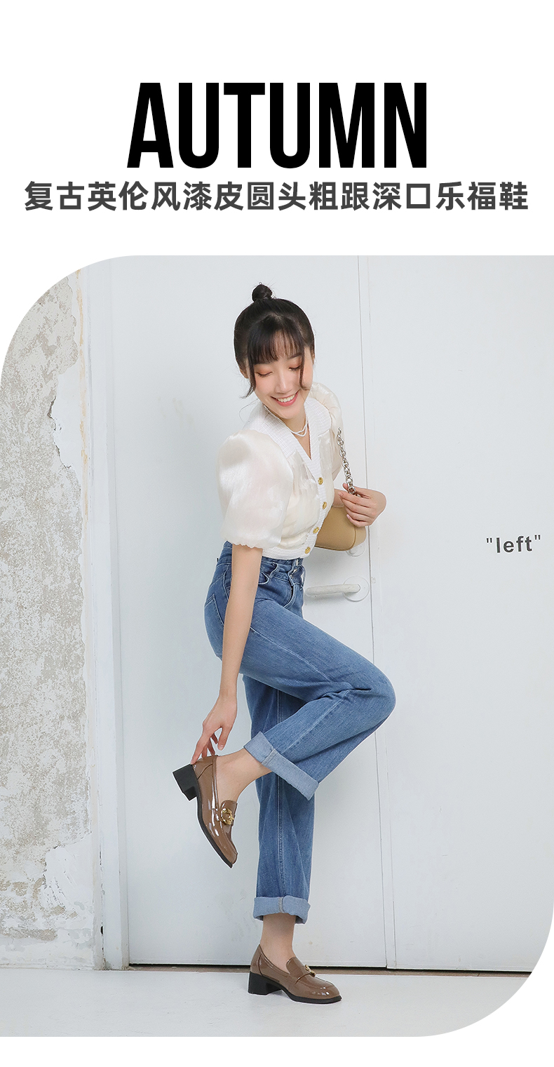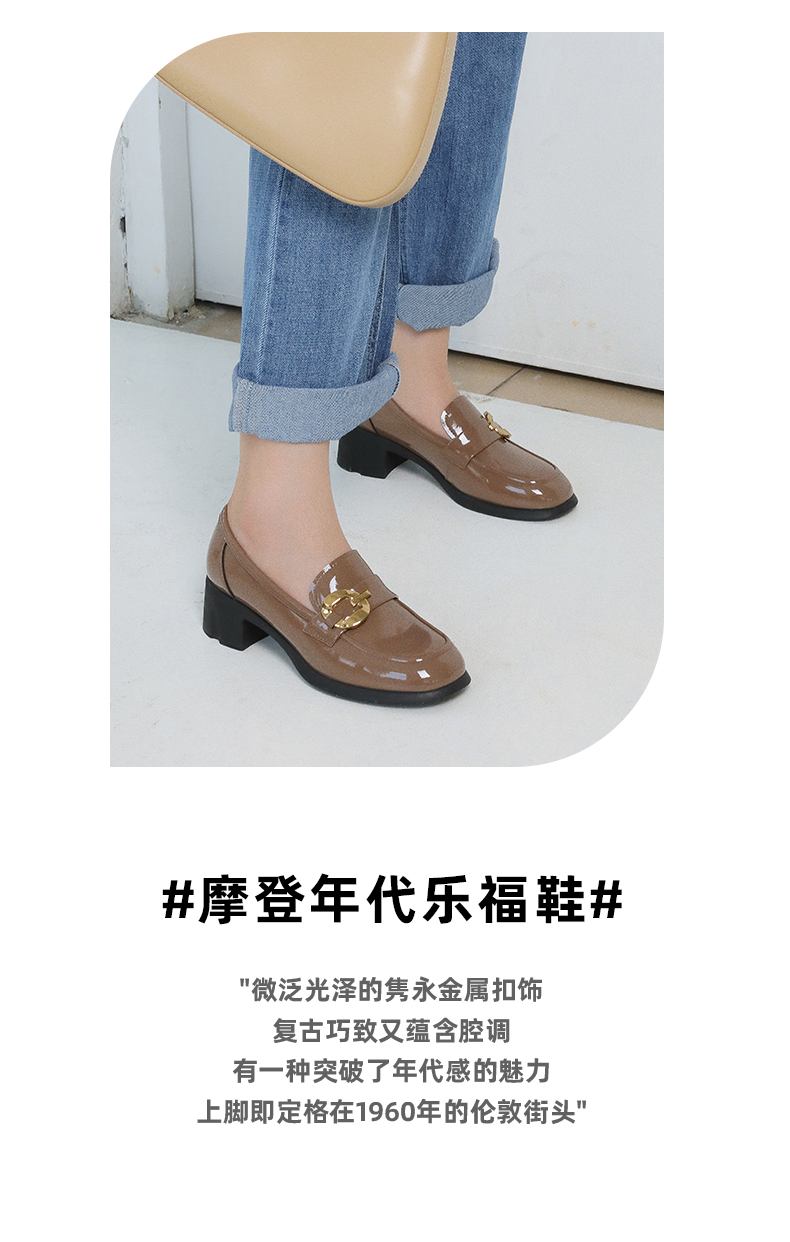 【七夕佳礼】Safiya/索菲娅 商场同款2023秋季新款小皮鞋复古英伦风漆皮圆头粗跟深口乐福鞋 SF33112420/SF23112420