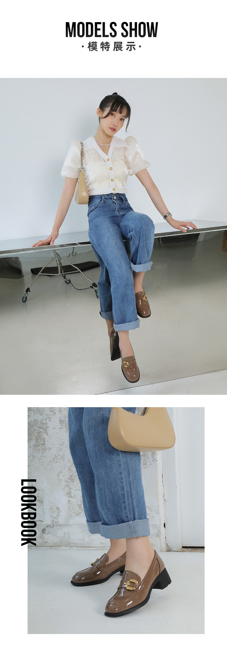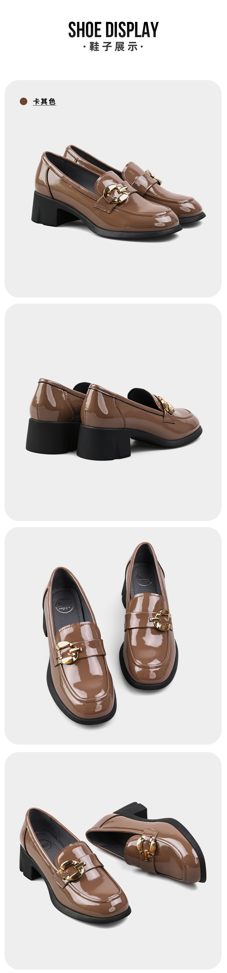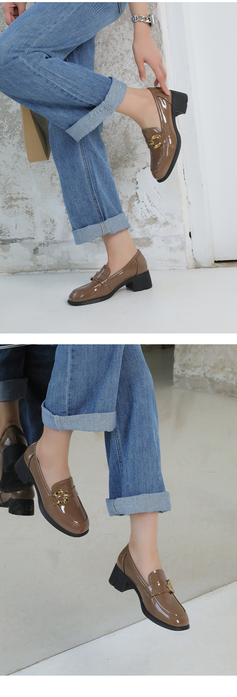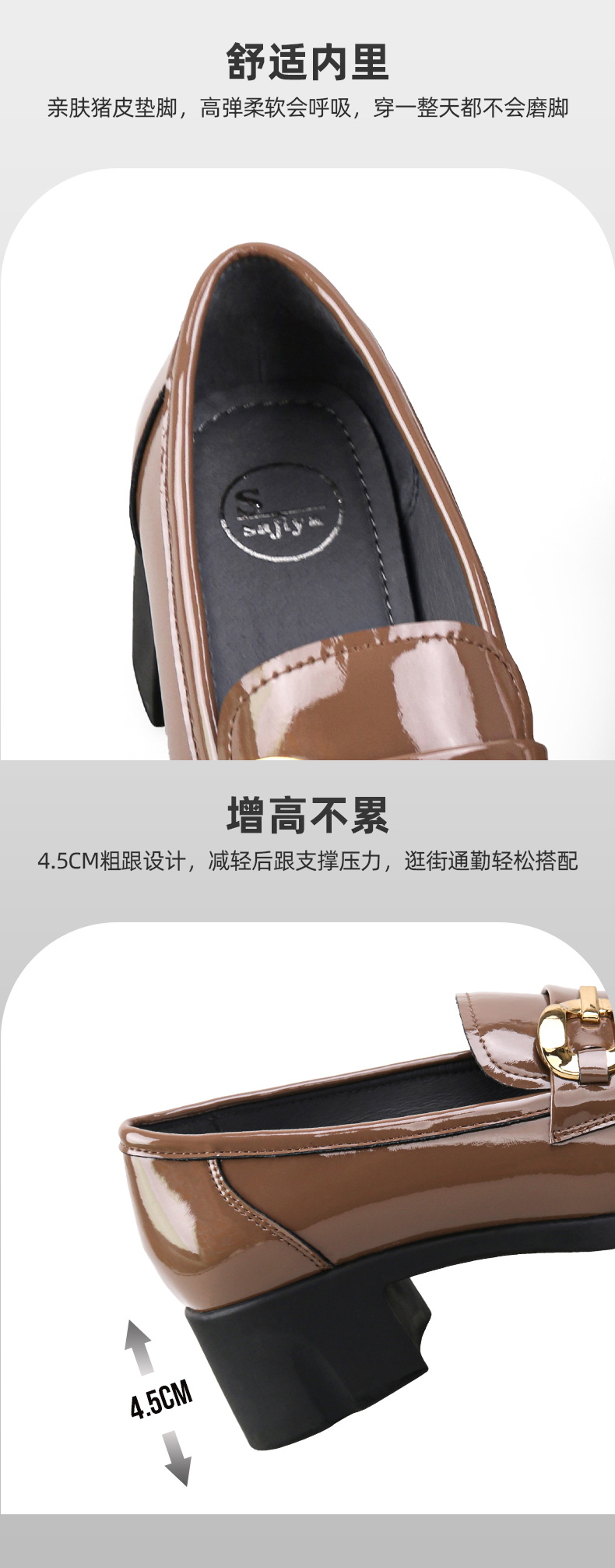 【七夕佳礼】Safiya/索菲娅 商场同款2023秋季新款小皮鞋复古英伦风漆皮圆头粗跟深口乐福鞋 SF33112420/SF23112420