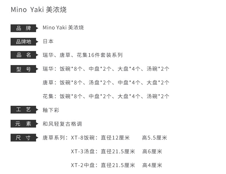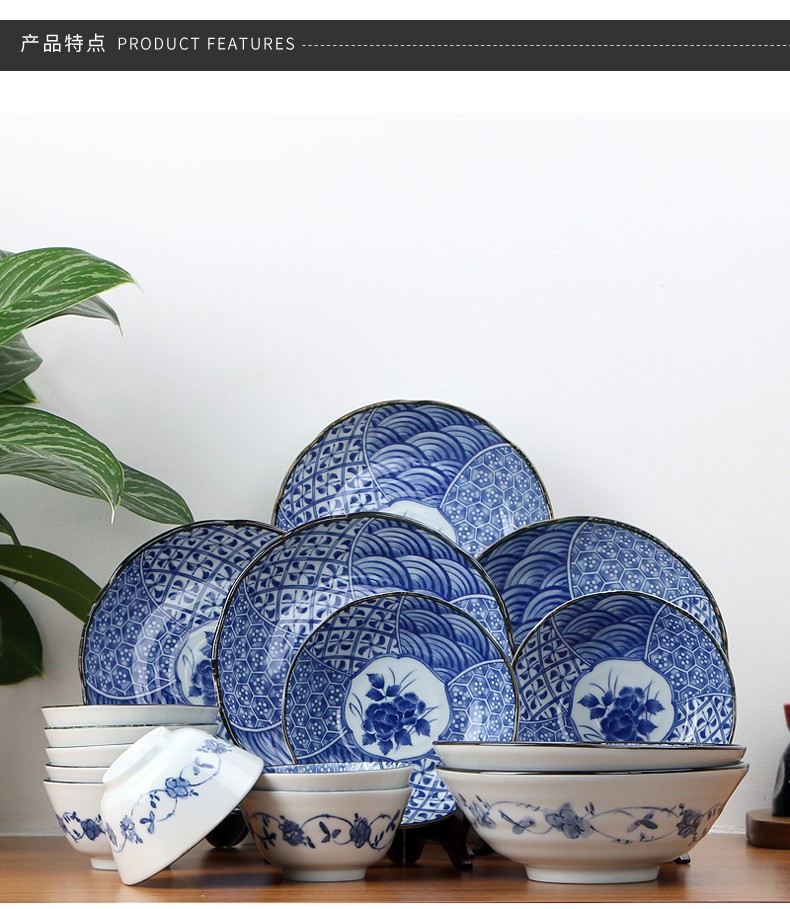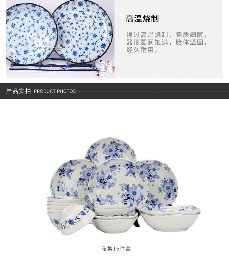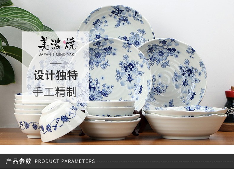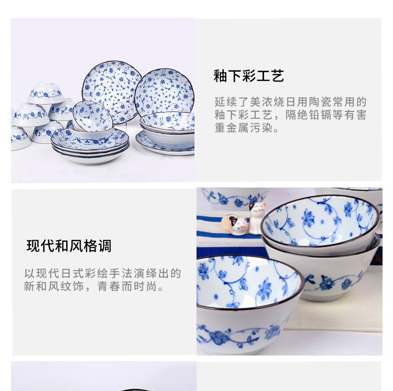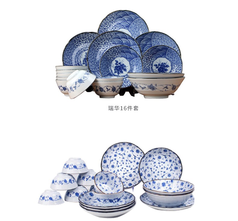 MINOYAKI/美浓烧 日本进口青花陶瓷碗碟盘餐具16件套唐草JPY带授权招加盟代理