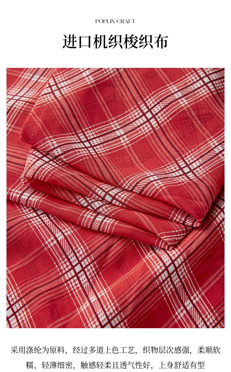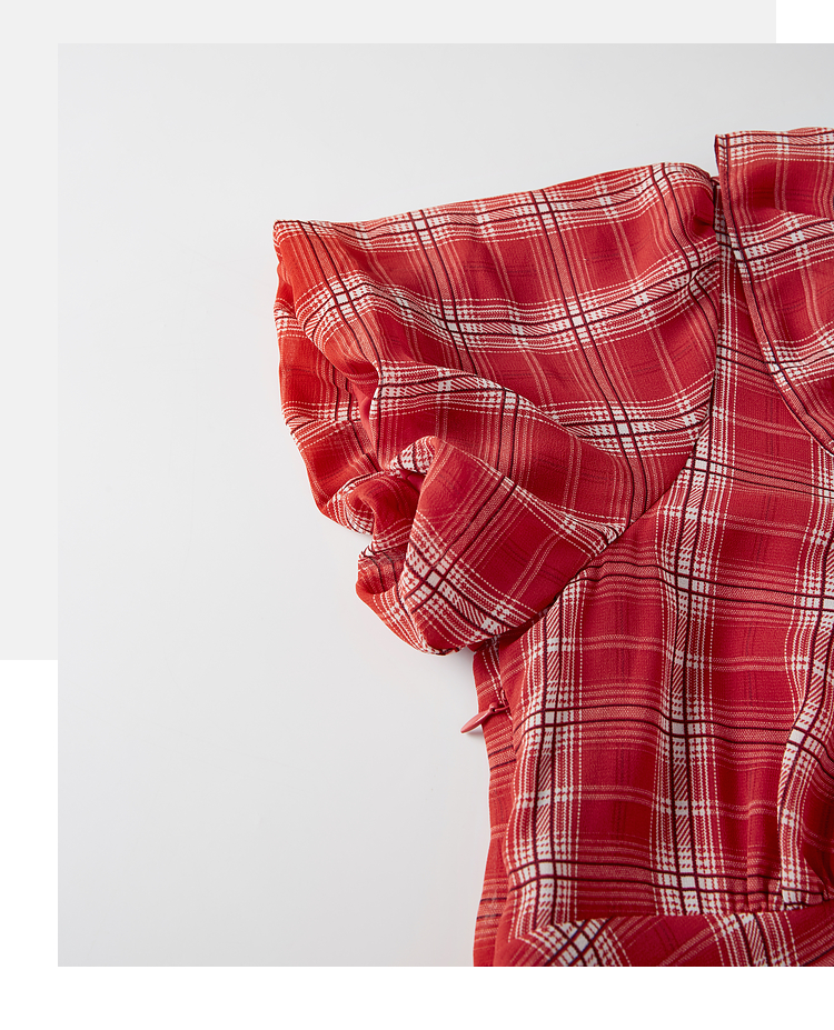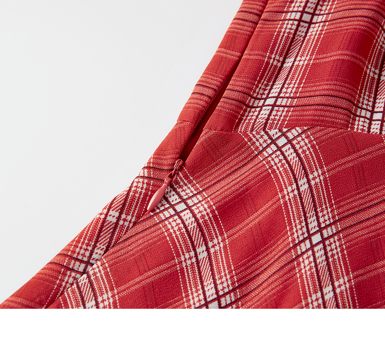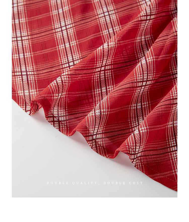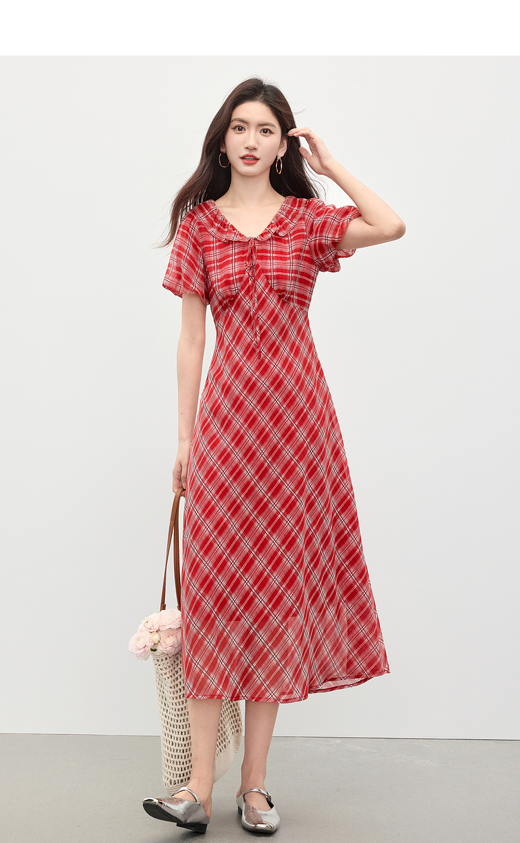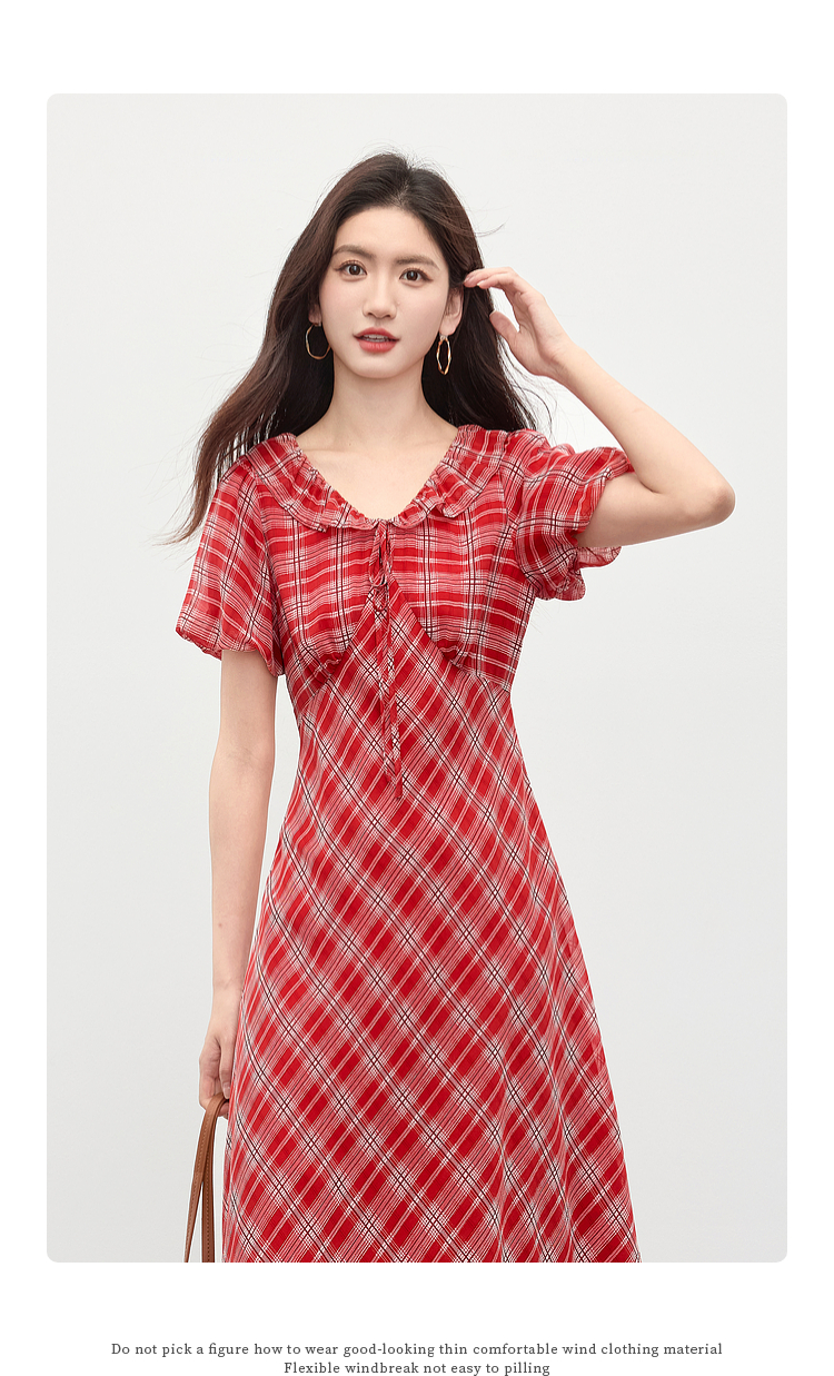 熙世界复古红色格纹连衣裙女高级感夏季气质灯笼袖海边度假长裙子