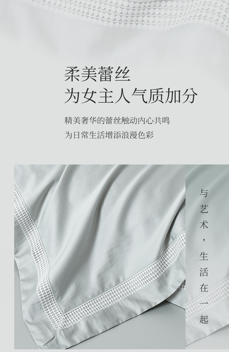 2025年夏季新品雅芳婷80S高针长绒棉蕾丝床上四件套纯棉床笠套件