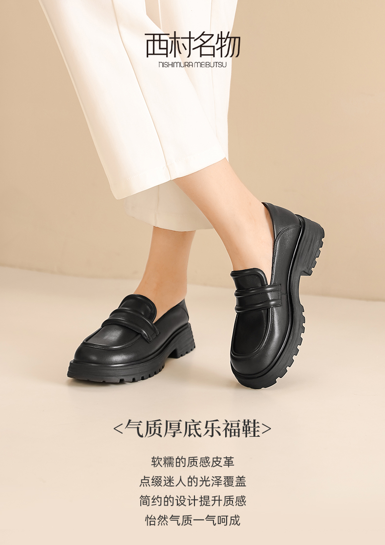 西村名物2023春季新款粗跟厚底小皮鞋女学院风百搭制服鞋12971