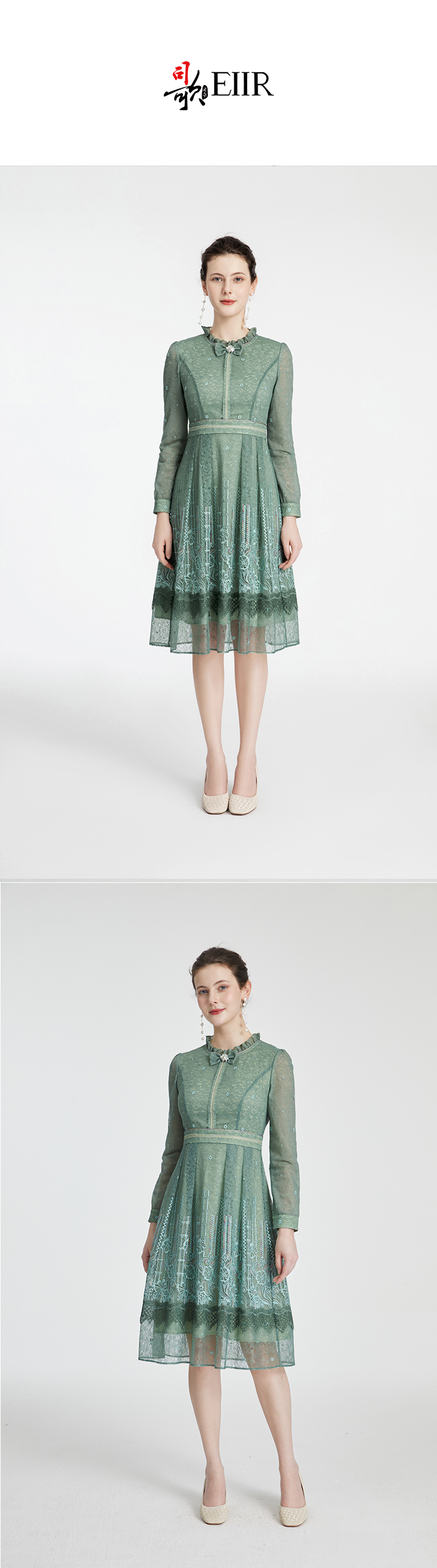 司歌刺绣蕾丝小立领国风连衣裙长袖显瘦A881275