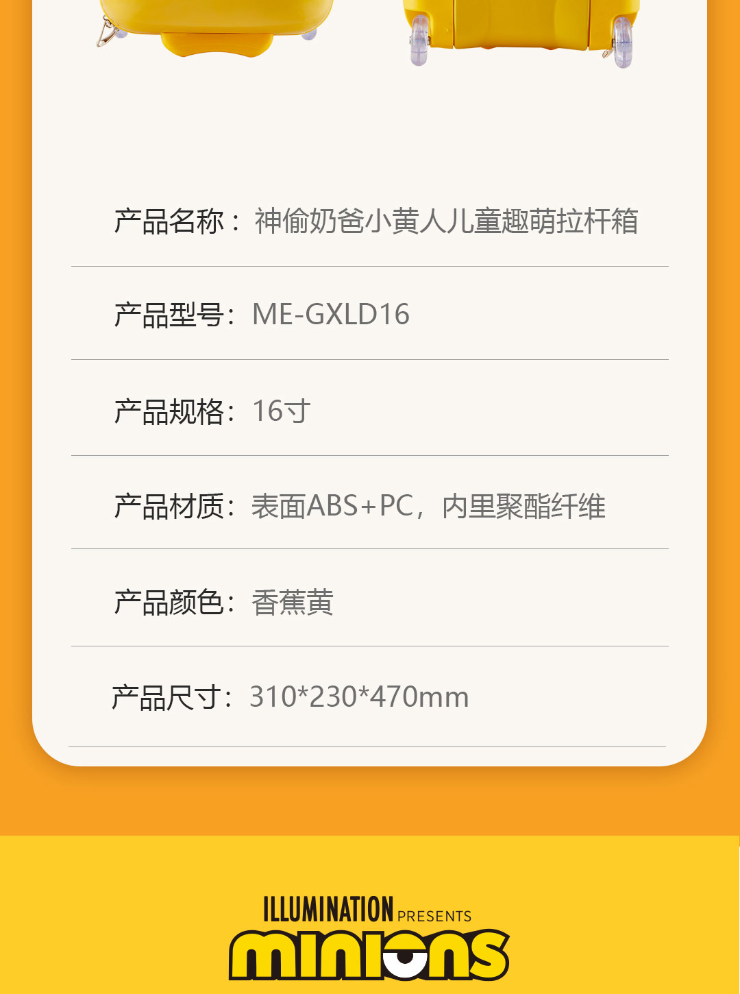 神偷奶爸小黄人儿童趣萌拉杆箱16寸ME-GXLD16