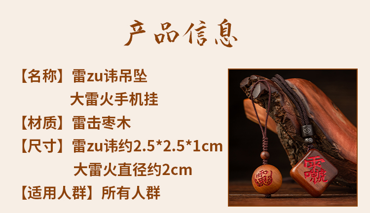 天然雷击枣木小雷祖、大雷火挂件男主同款饰品