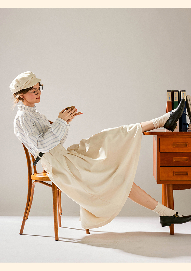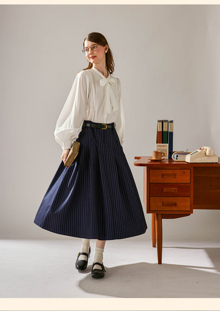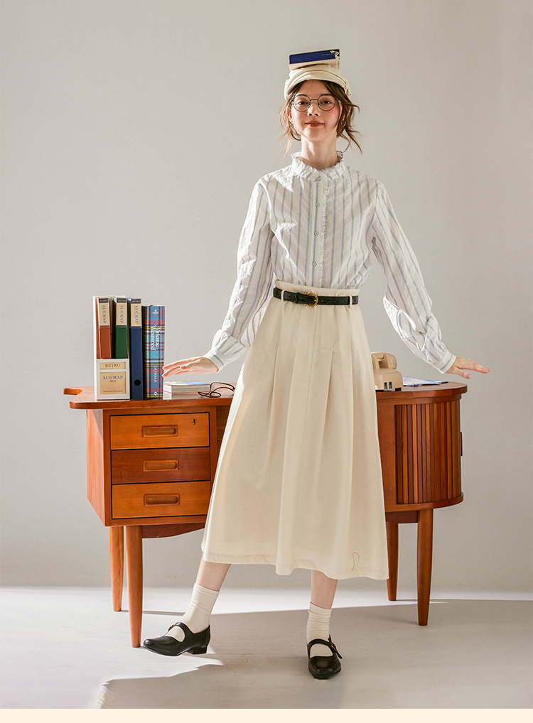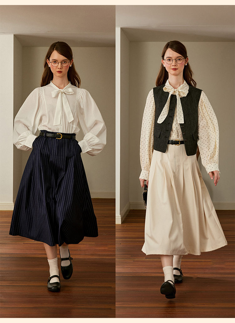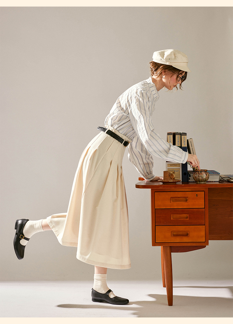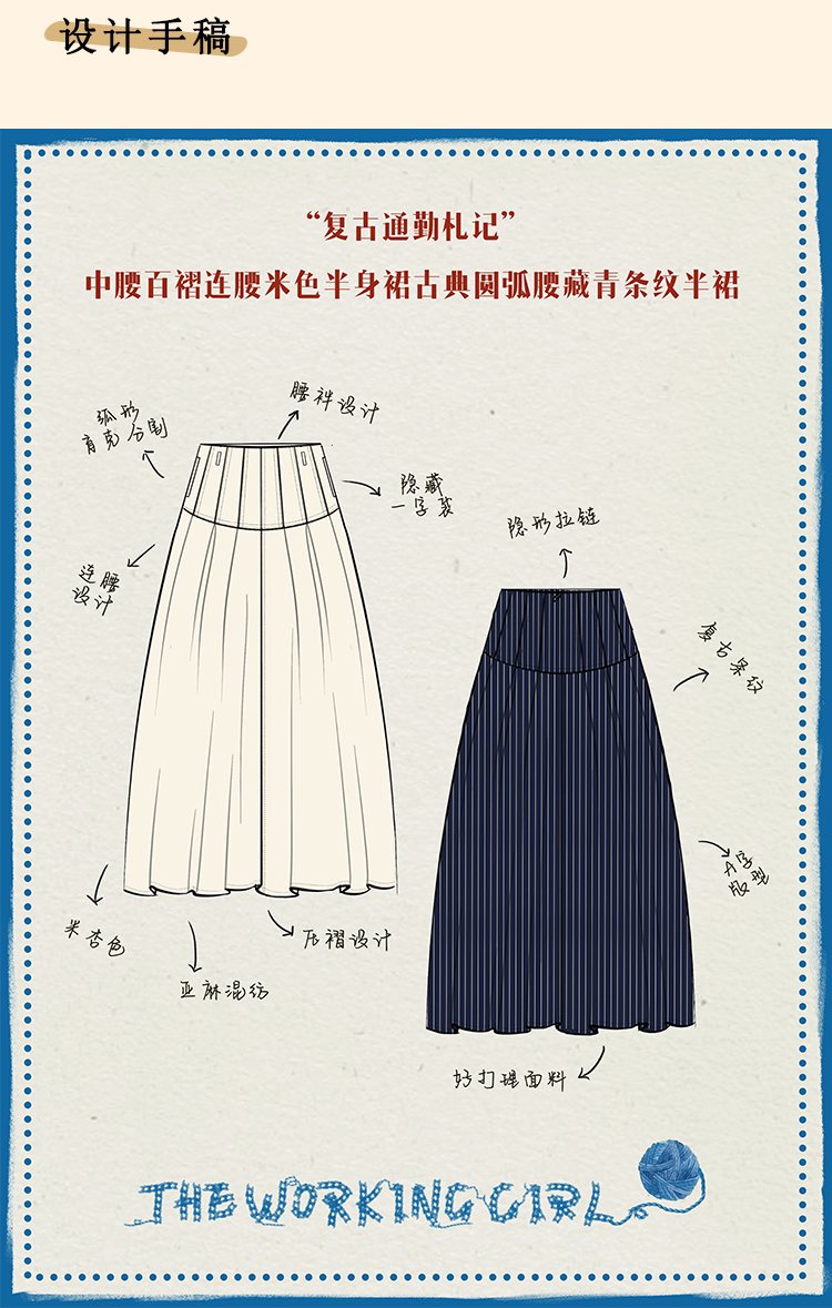 浮生八记/24C083/中腰百褶连腰半身裙古典圆弧腰纹半裙