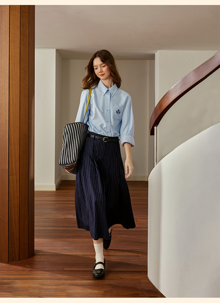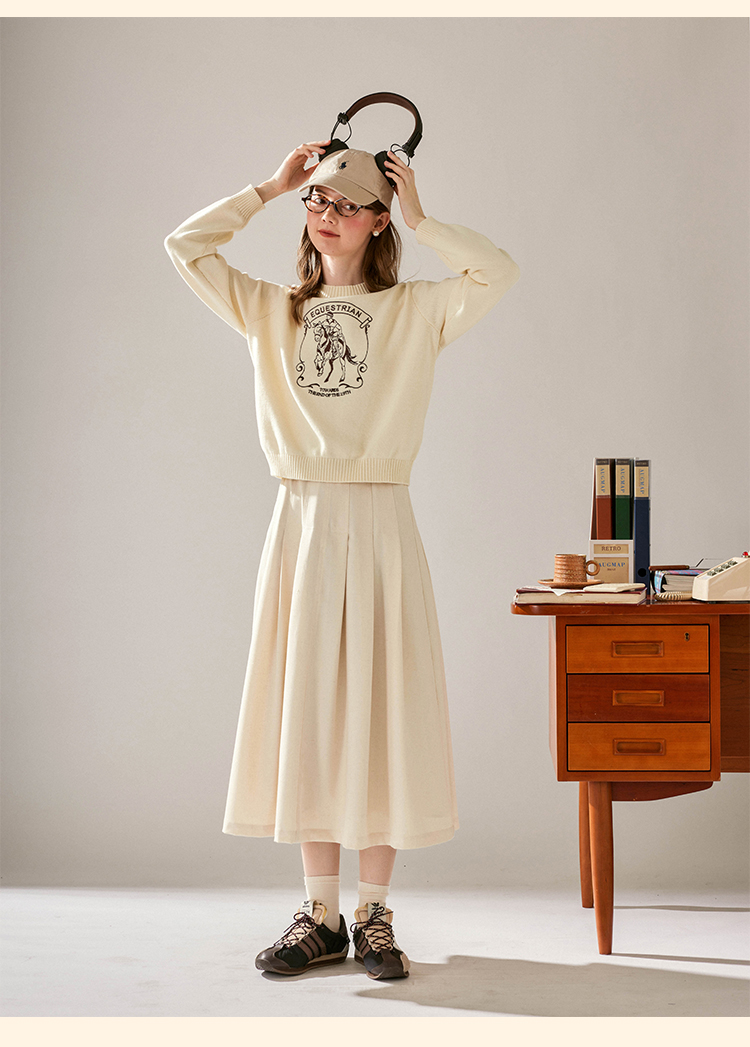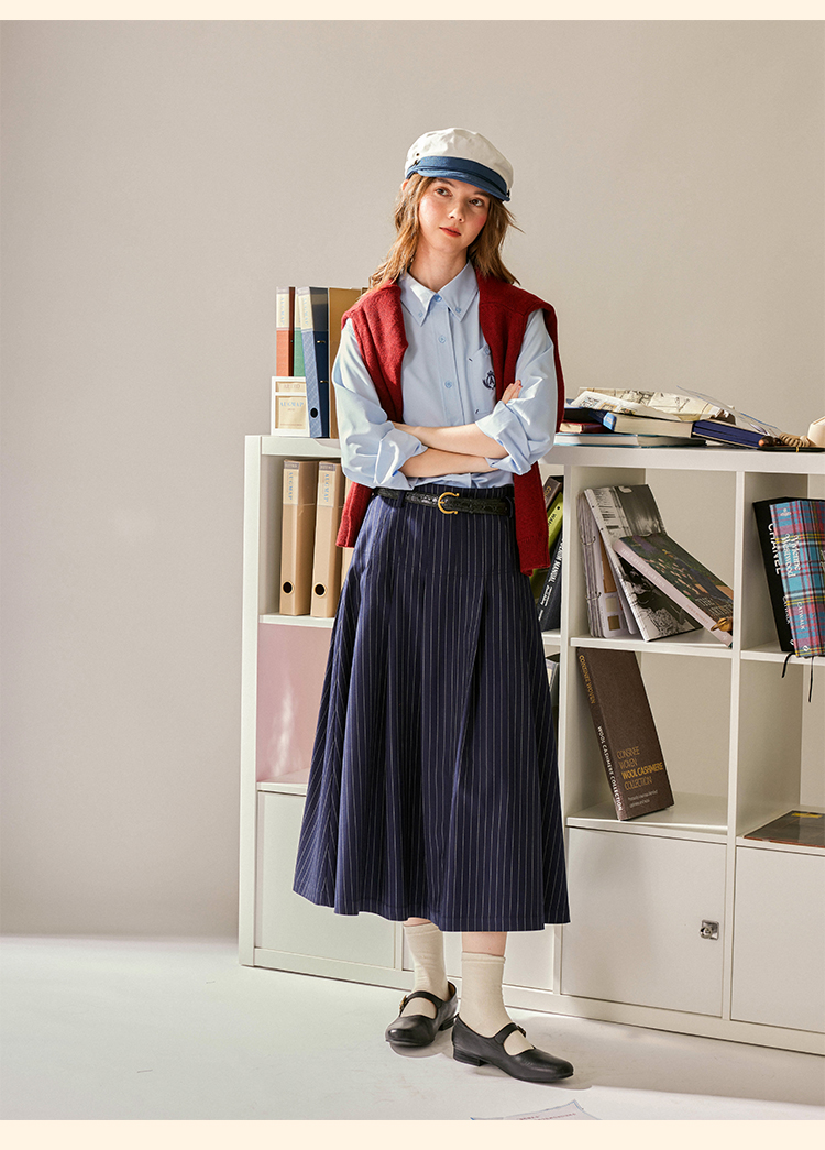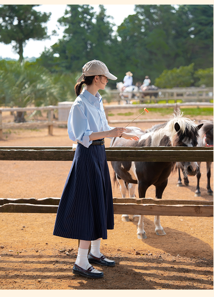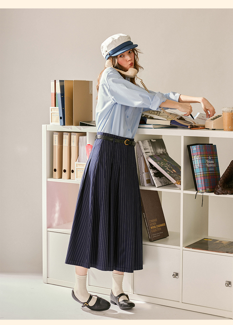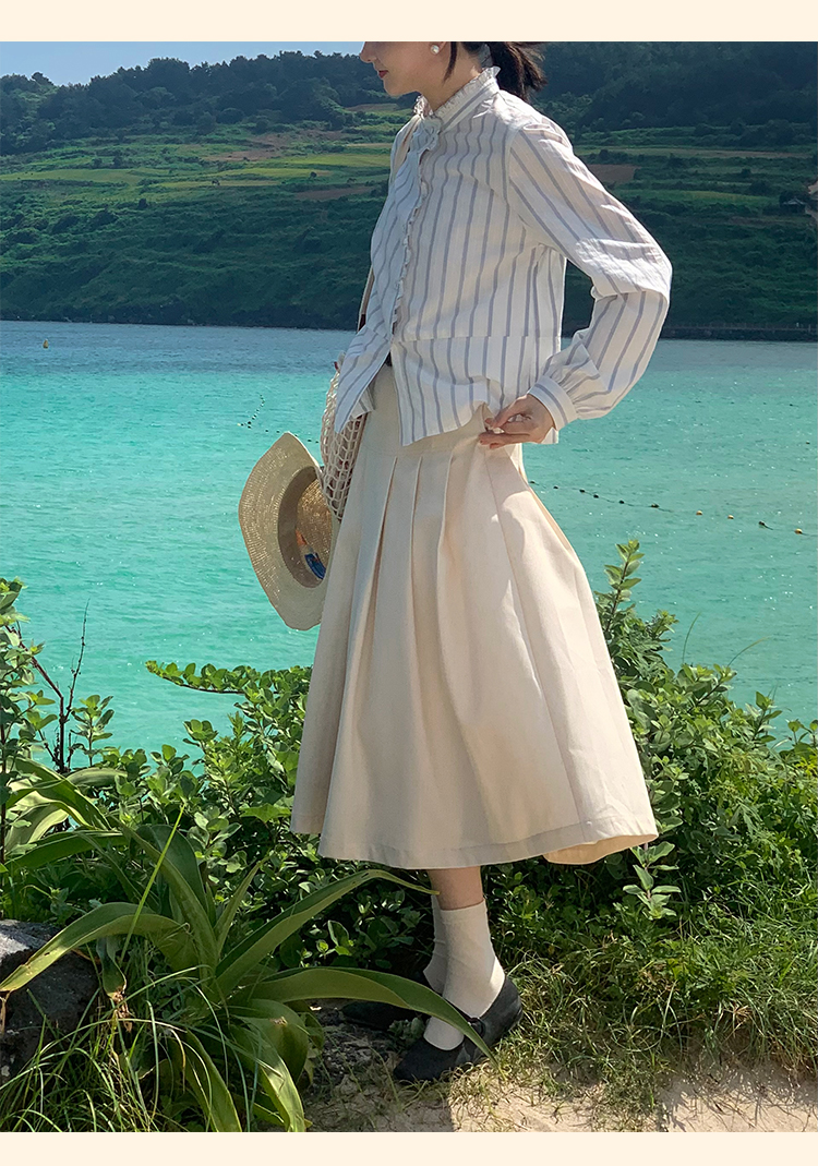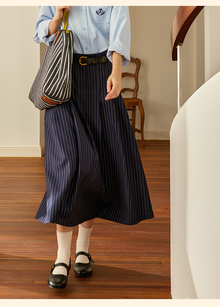 浮生八记/24C083/中腰百褶连腰半身裙古典圆弧腰纹半裙