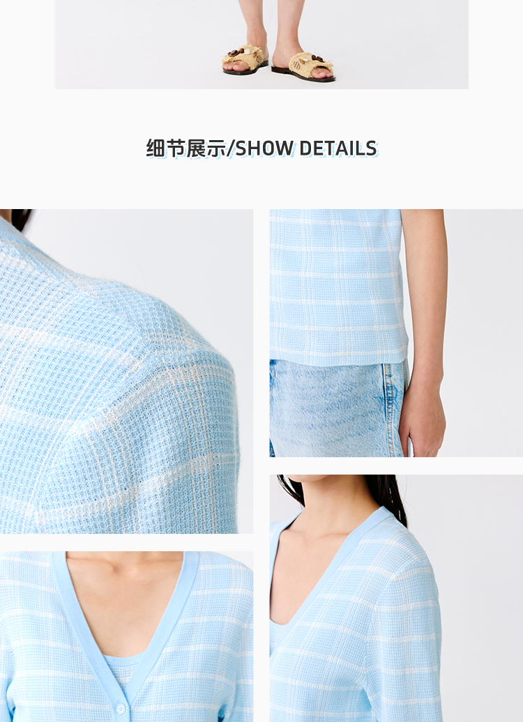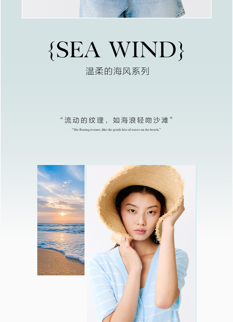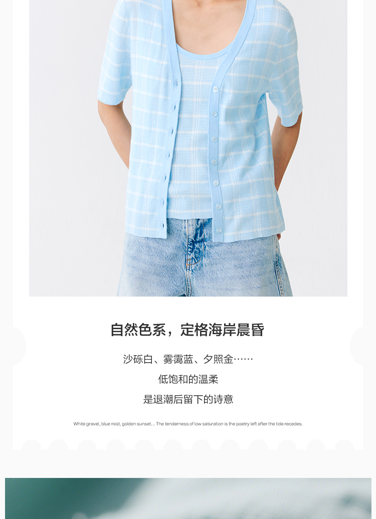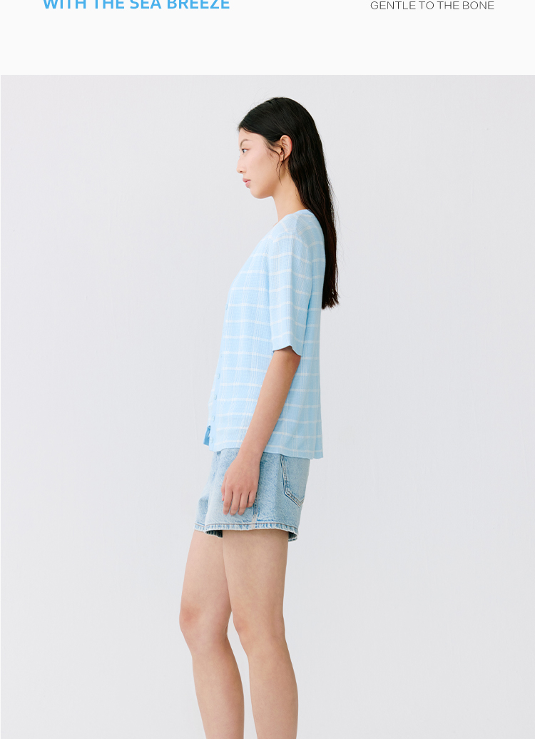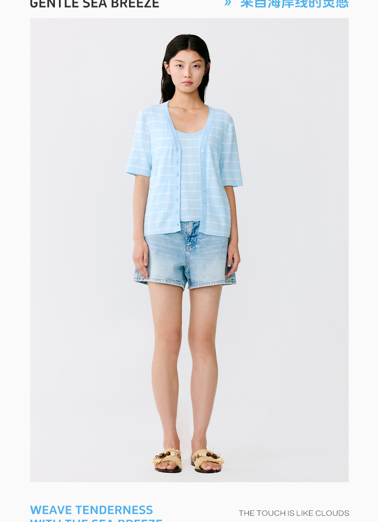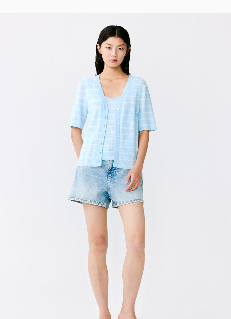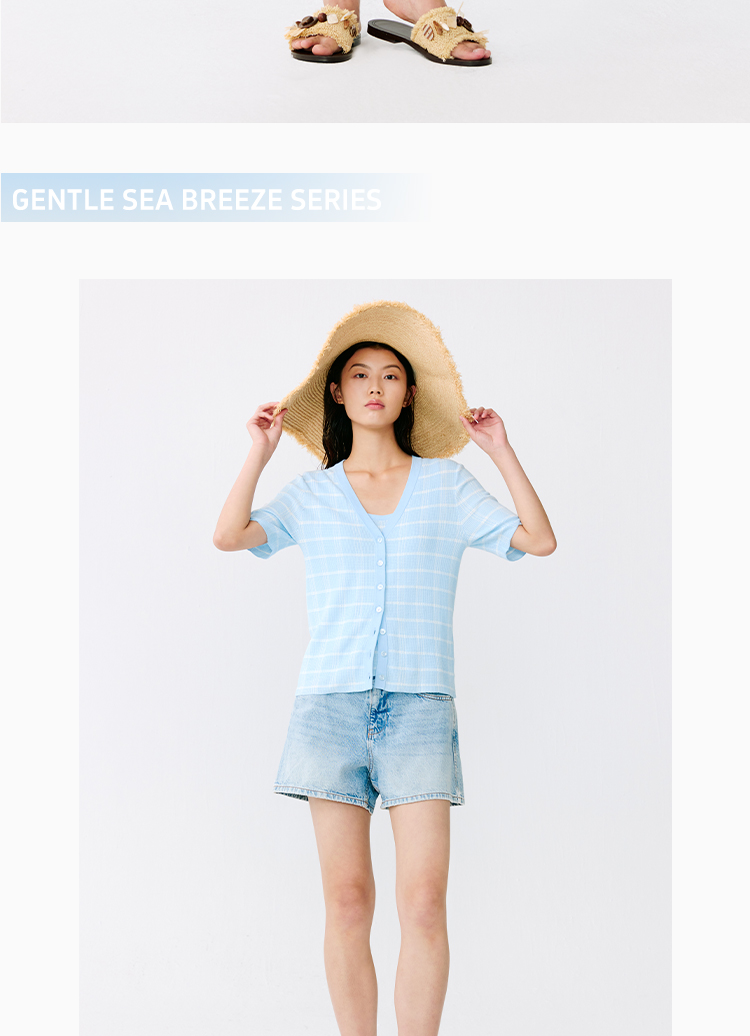 东黎 • 温柔的海风 海岛棉女士V领短袖开衫 5268
