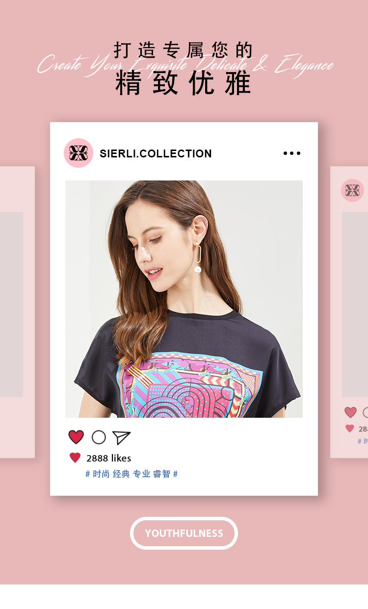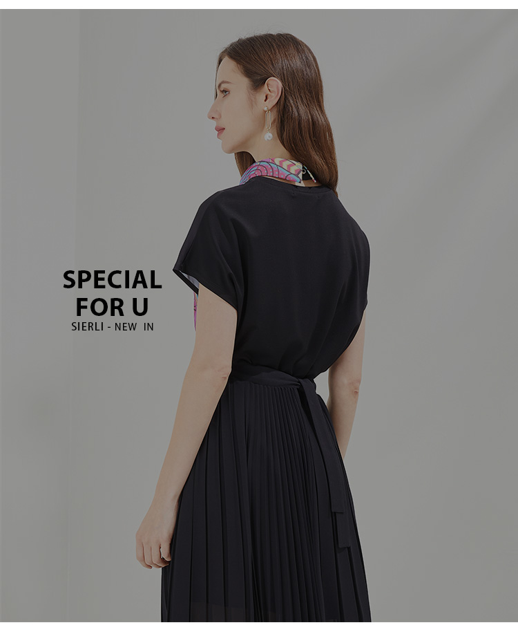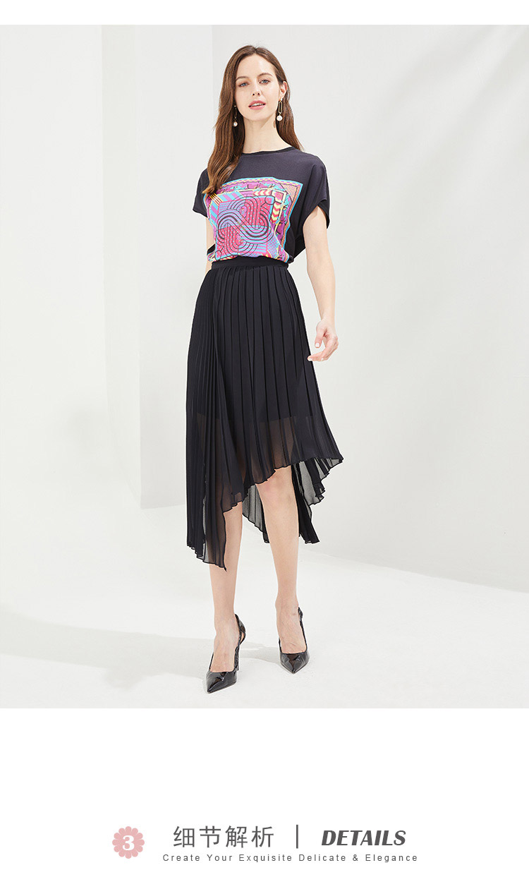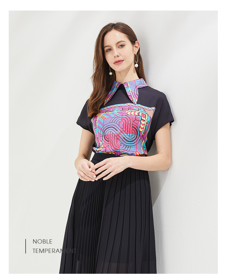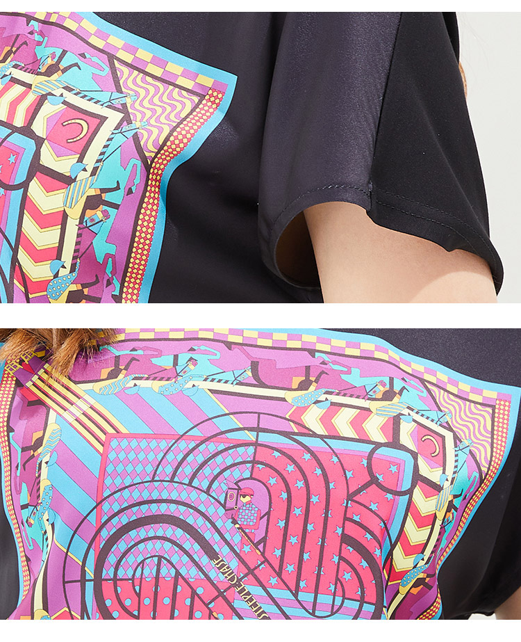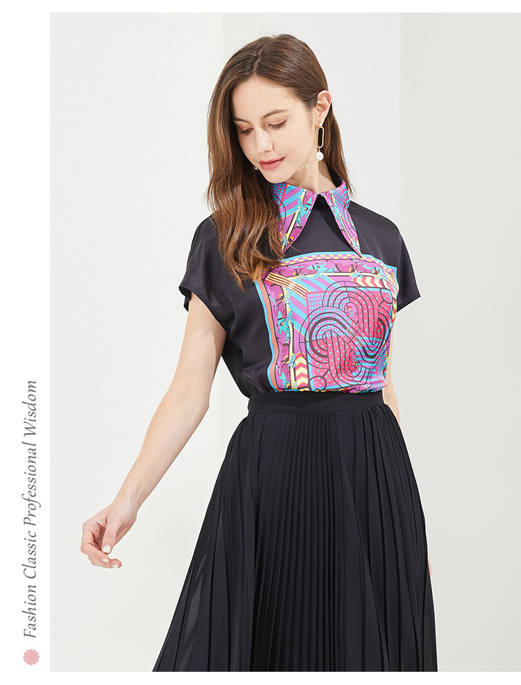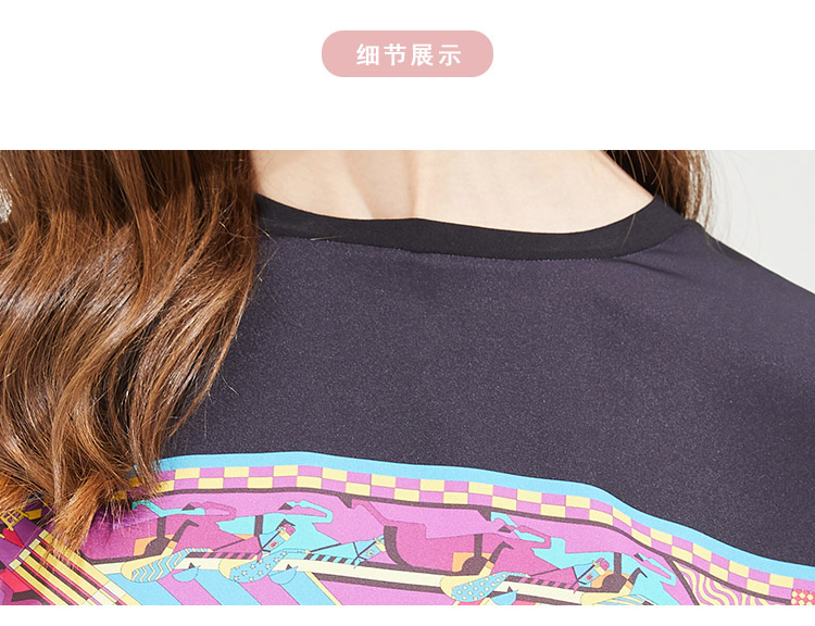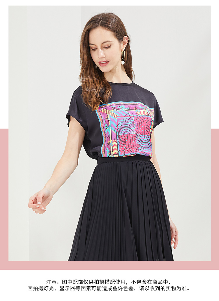 QF702瑟俪2022年夏季上新印花可脱卸蝴蝶领蝙蝠袖短款T袖