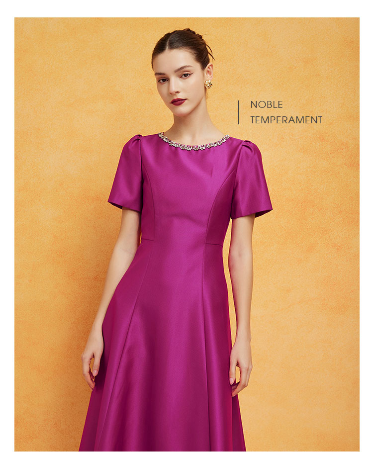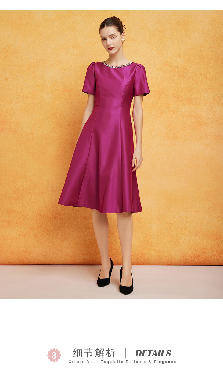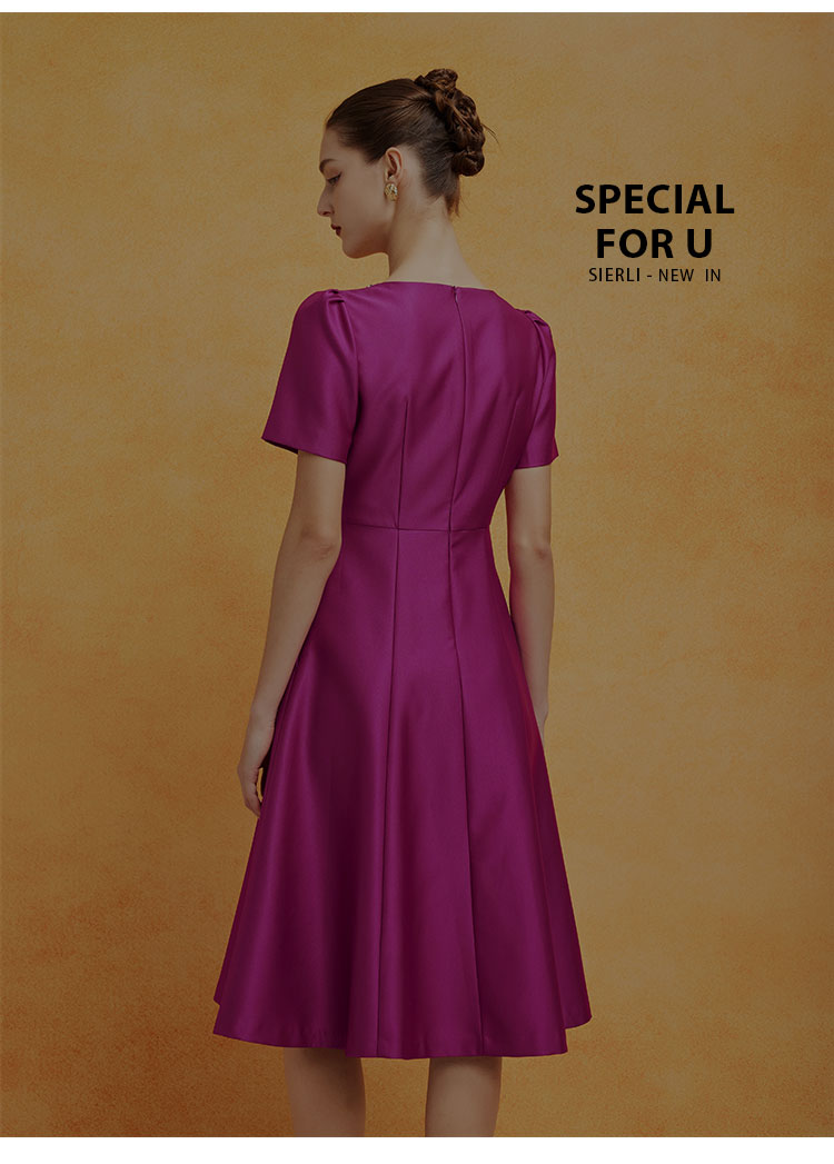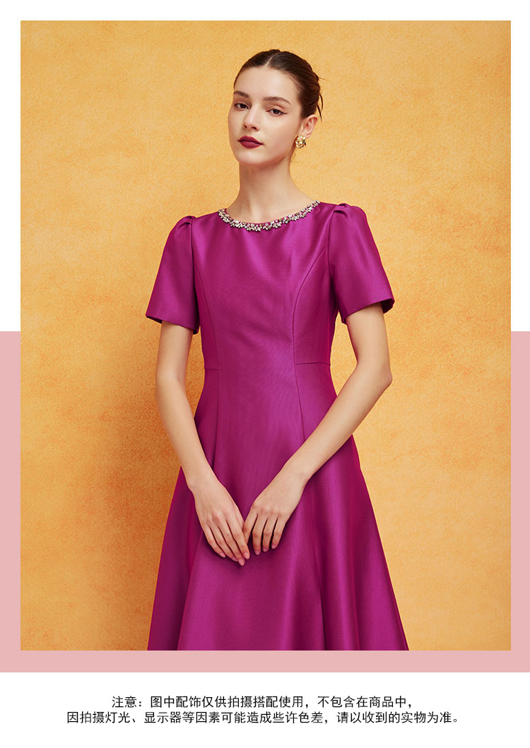 PF8C4斯尔丽2024新款法式优雅丝毛小礼服收腰放摆显高显瘦浪漫连衣裙
