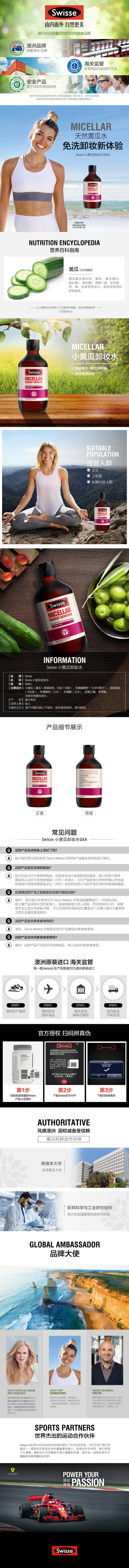 澳洲进口swisse斯维诗黄瓜卸妆液免洗卸妆水300ml