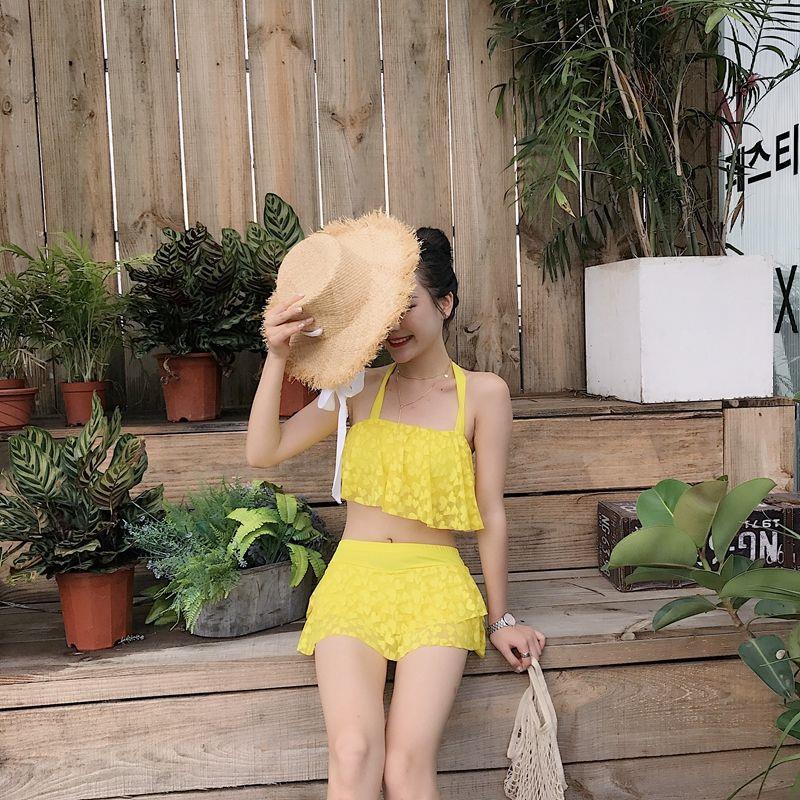 黛唯梵 学生韩版ins泳衣 女分体裙式性感保守 小胸聚拢两件套泳装