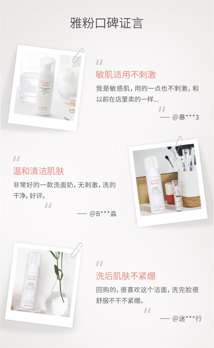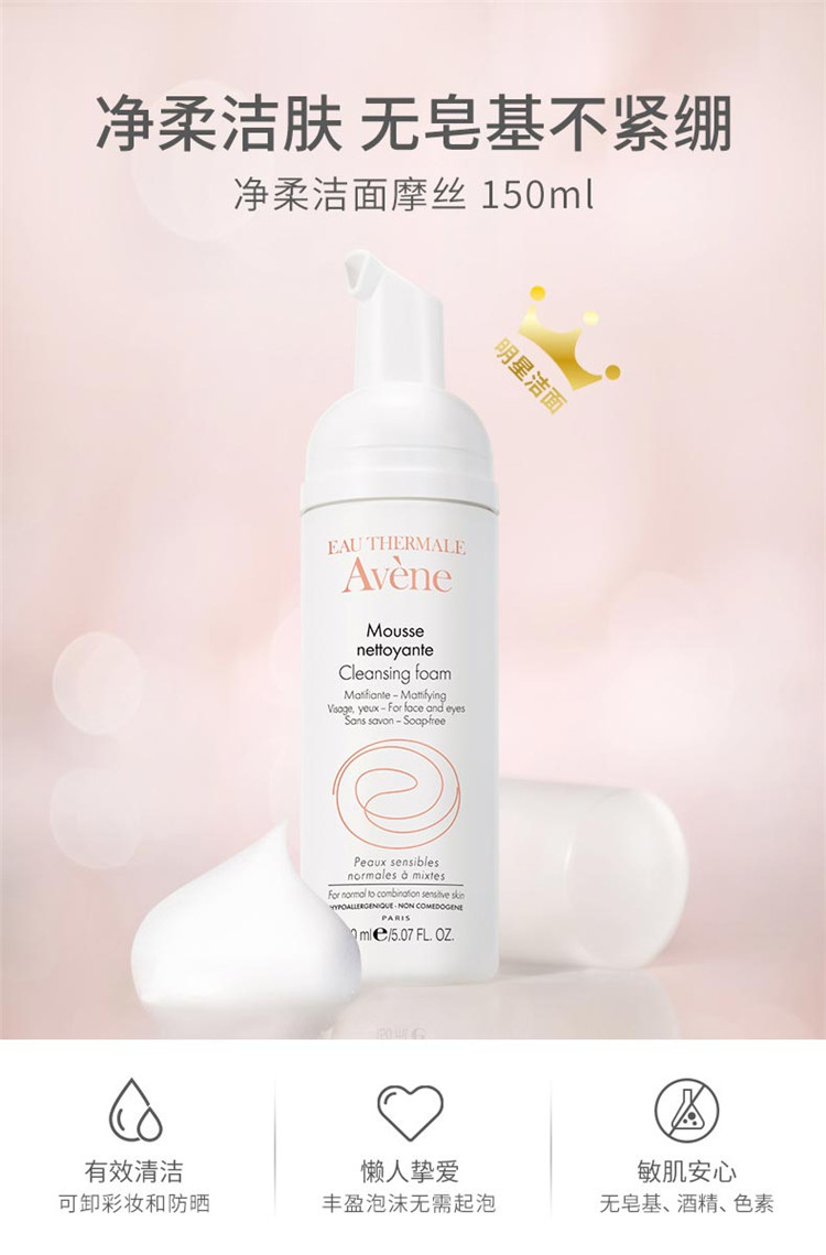 雅漾净柔洁面摩丝150ml 舒缓肌肤温和清洁不紧绷
