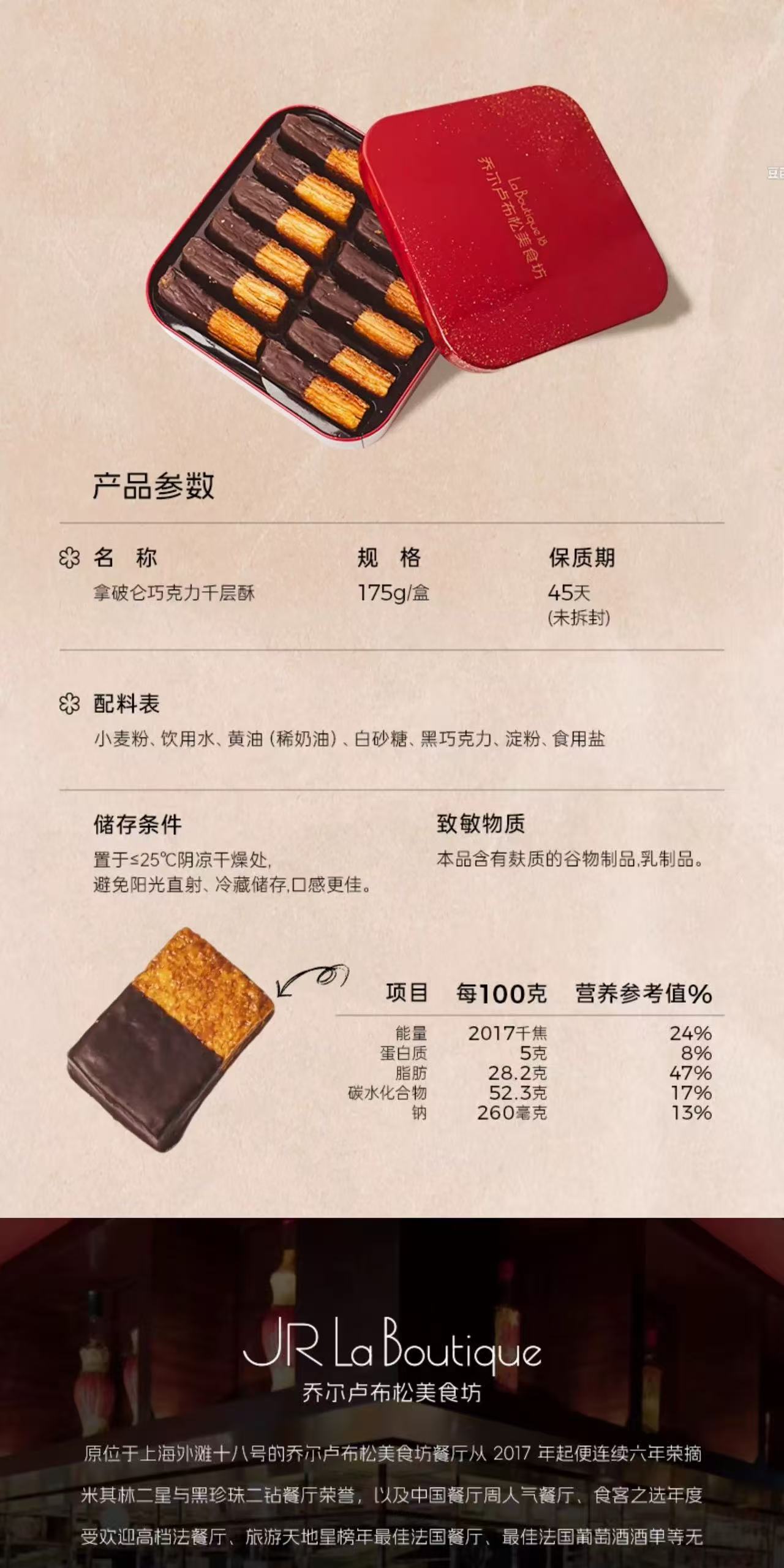 【女神节】乔尔卢布松 拿破仑巧克力千层酥 175g