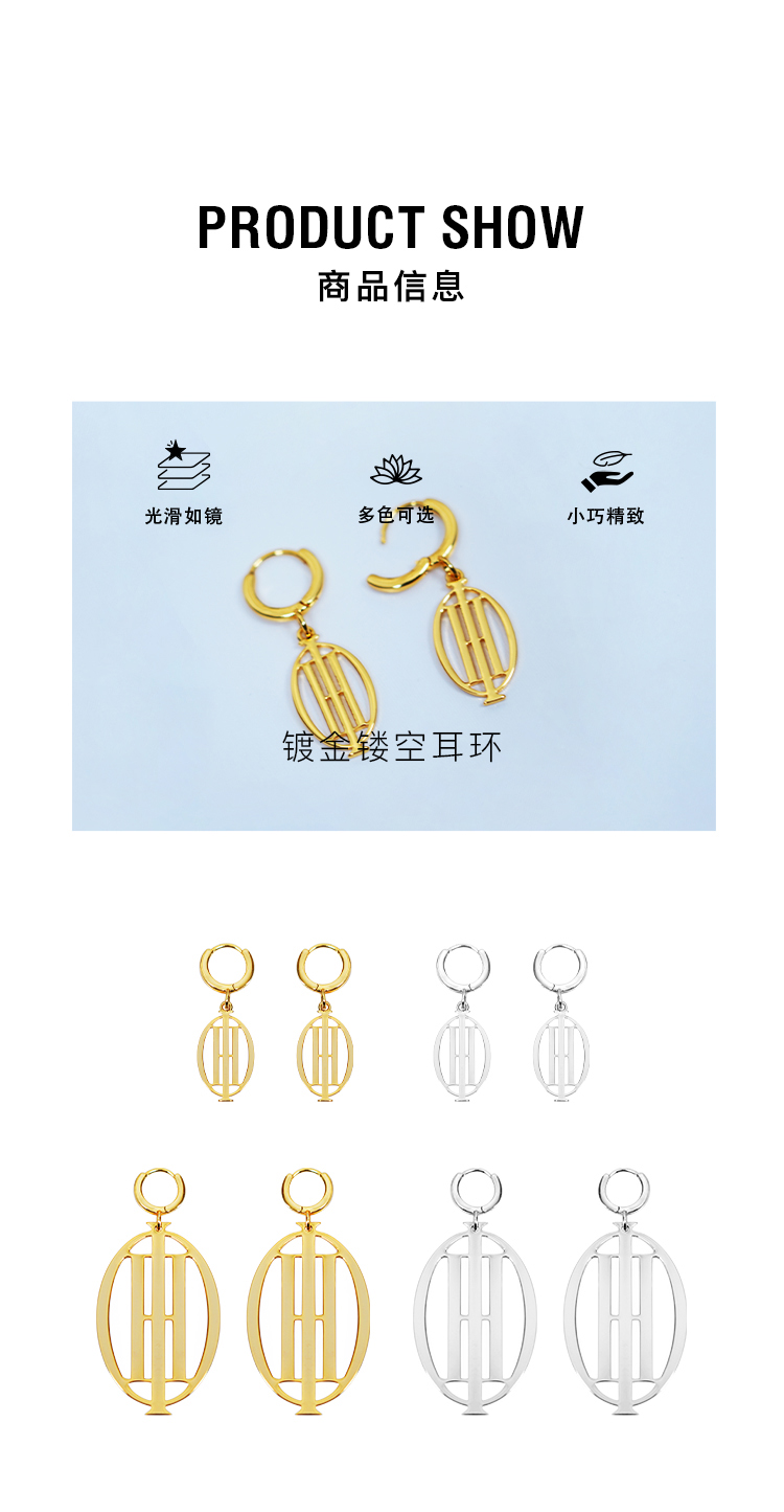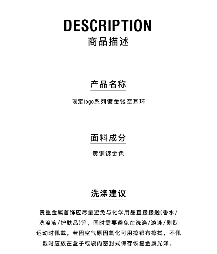 HIDEMI 限定logo系列镀金镂空耳环