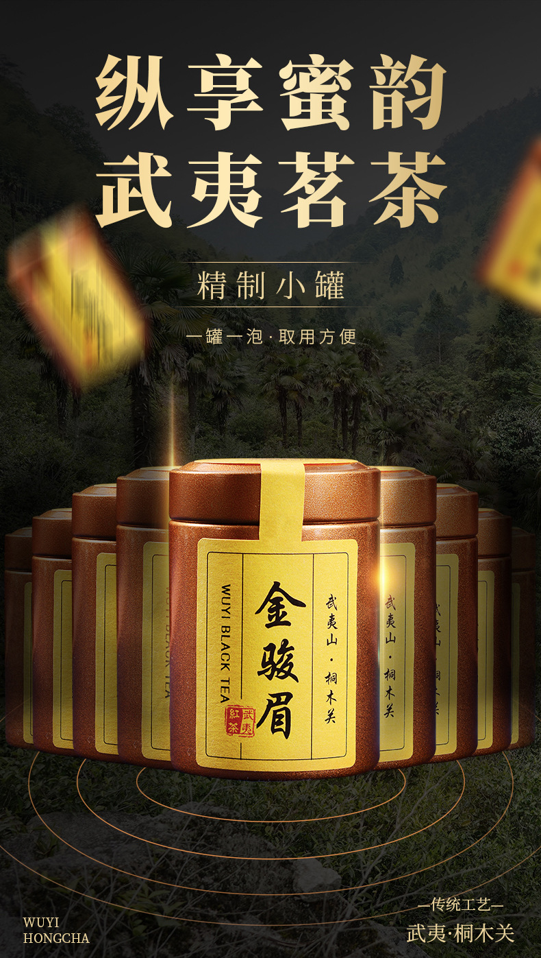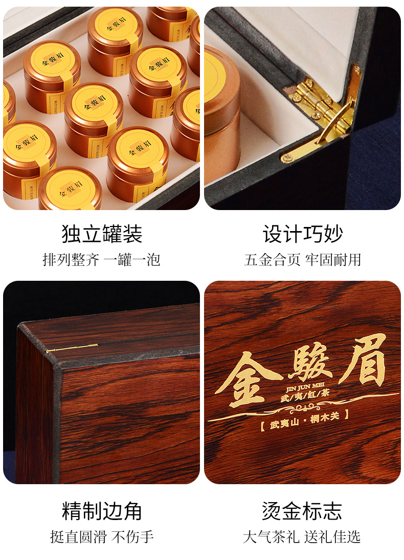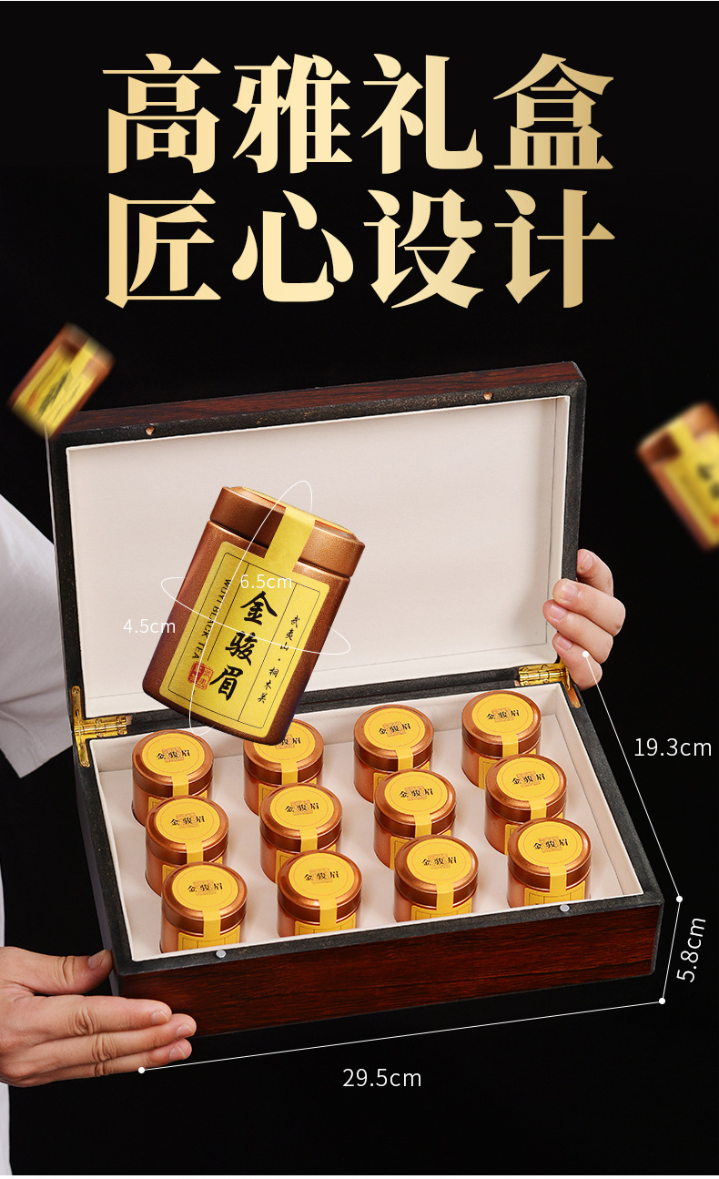 父亲节好物【一罐一泡!取用方便】武夷山特级红茶金骏眉茶叶正山小种新茶实木礼盒120g。ry
