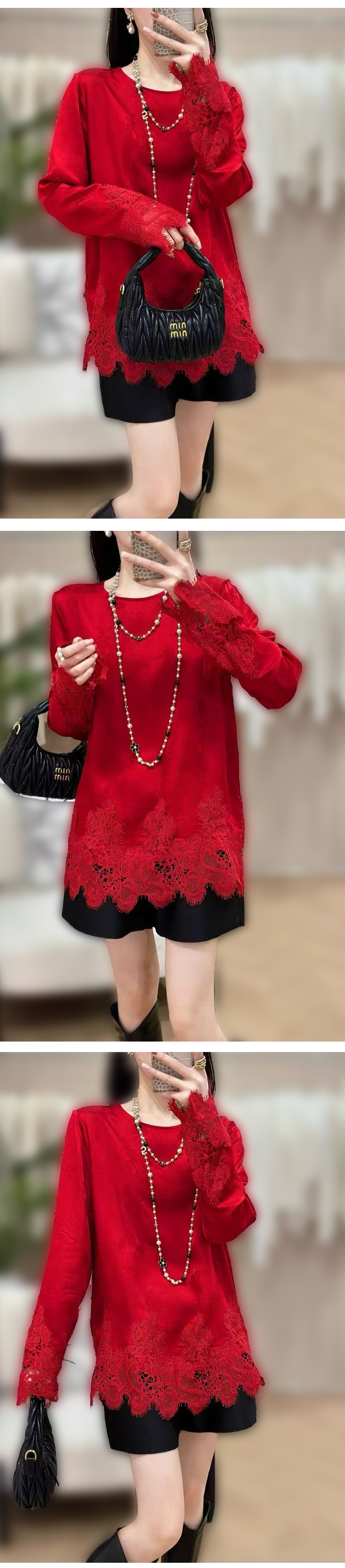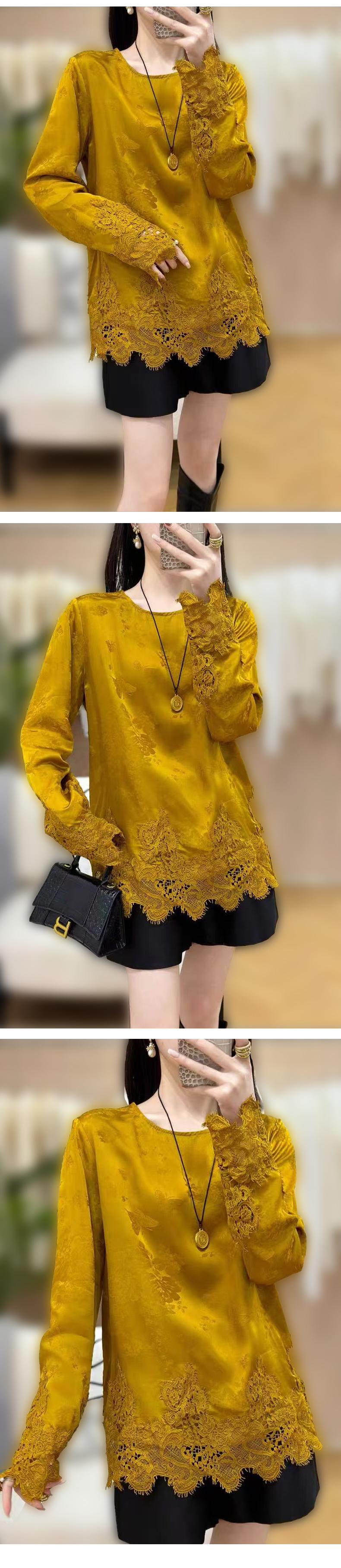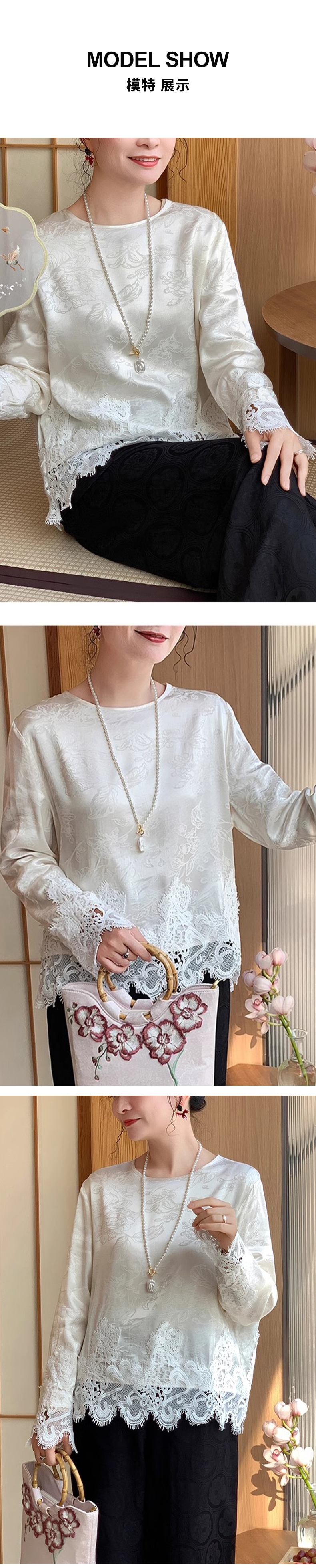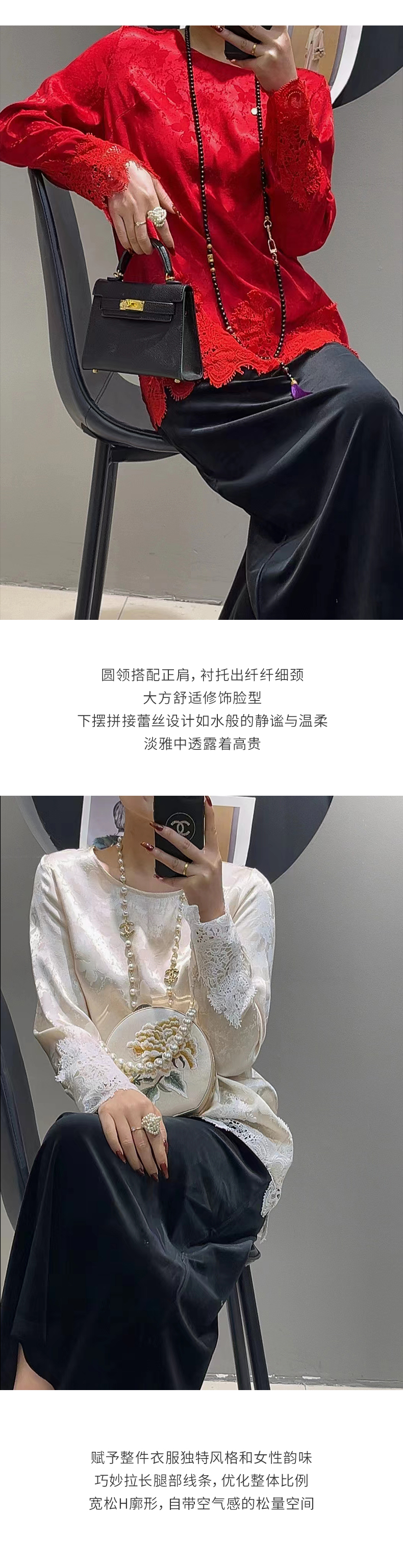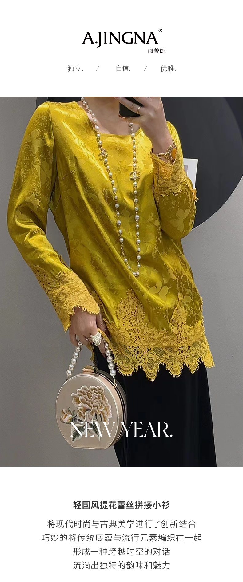 【特价不退换】阿菁娜轻国风提花蕾丝拼接小衫F30C202019