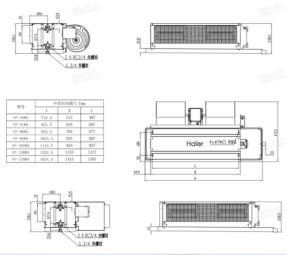海尔水冷空调室内散热散冷器海尔 热泵FP-85WA-Y3