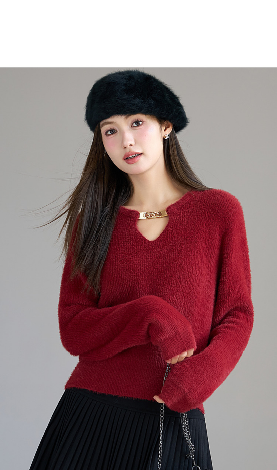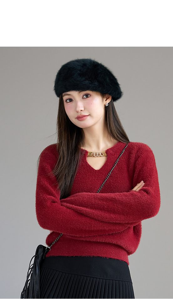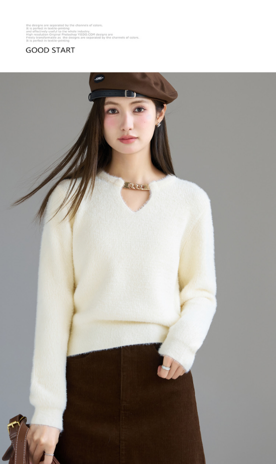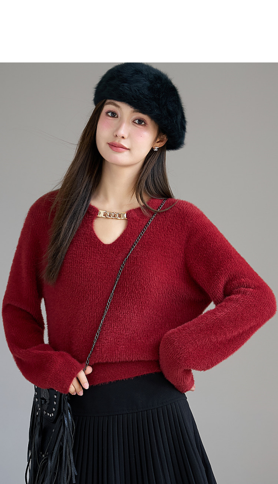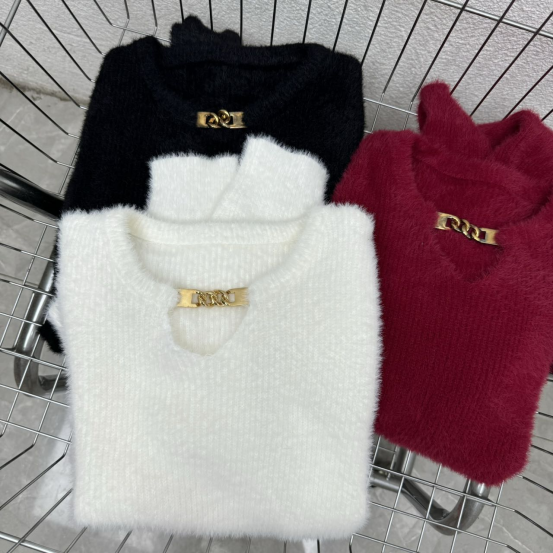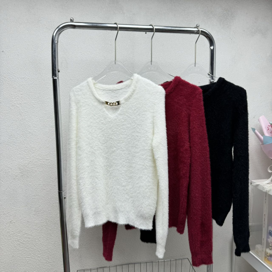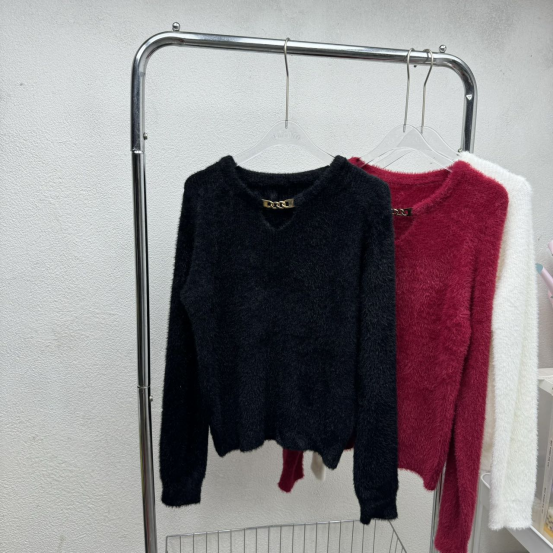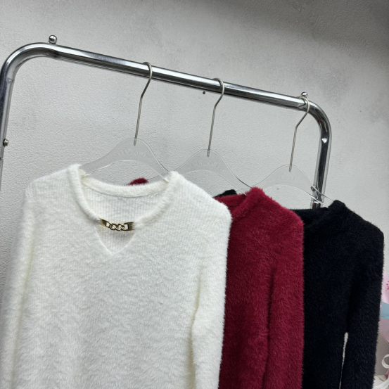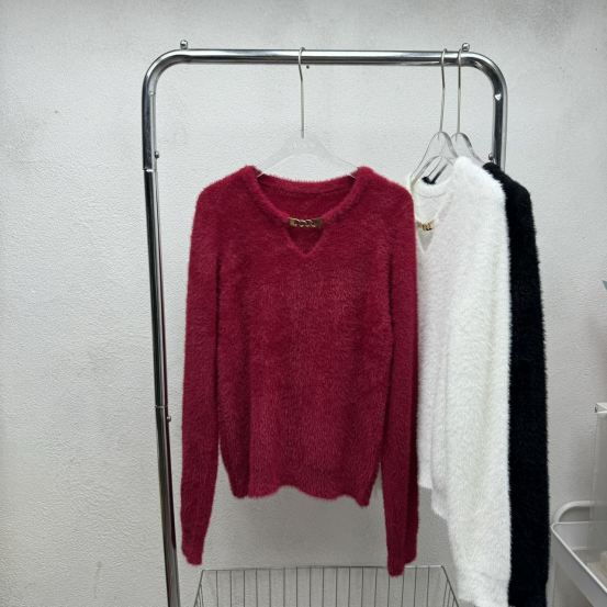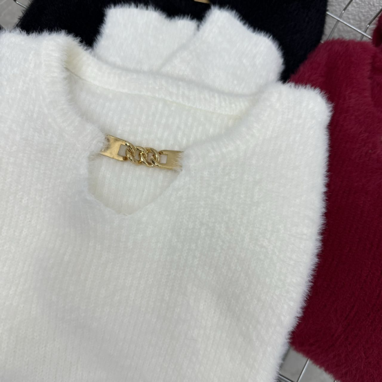 🥰🥰🥰【仿貂绒链条设计感显瘦针织上衣】😉1、仿貂绒材质柔软细腻,触感舒适🌸,给人温暖感 🌈~2、链条设计💨💨:为上衣增添了独特的时尚感和