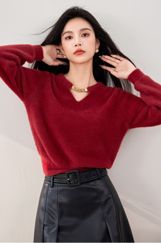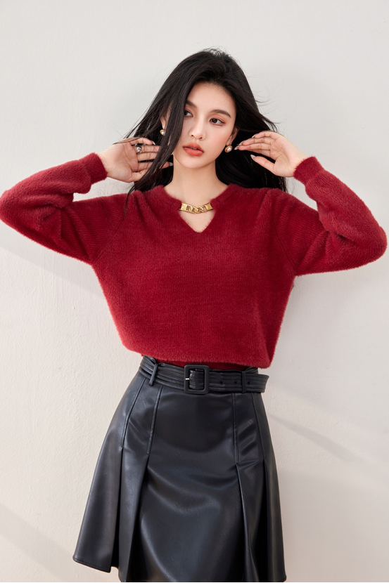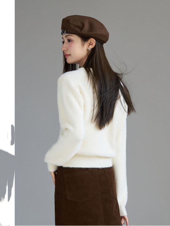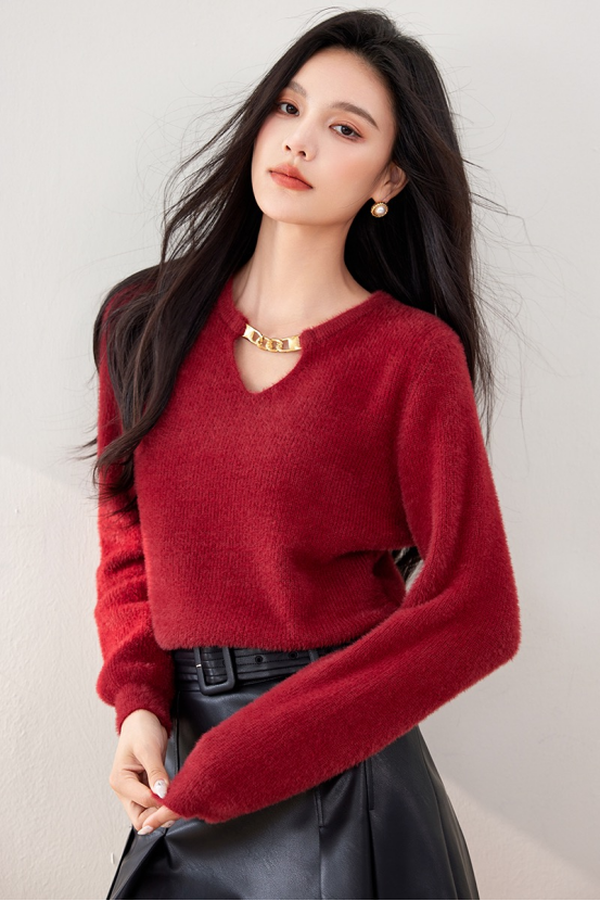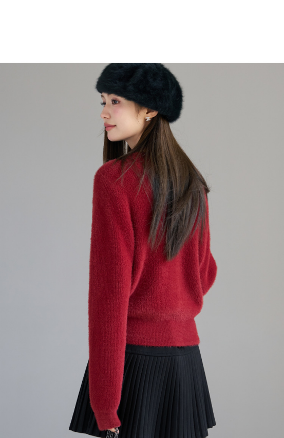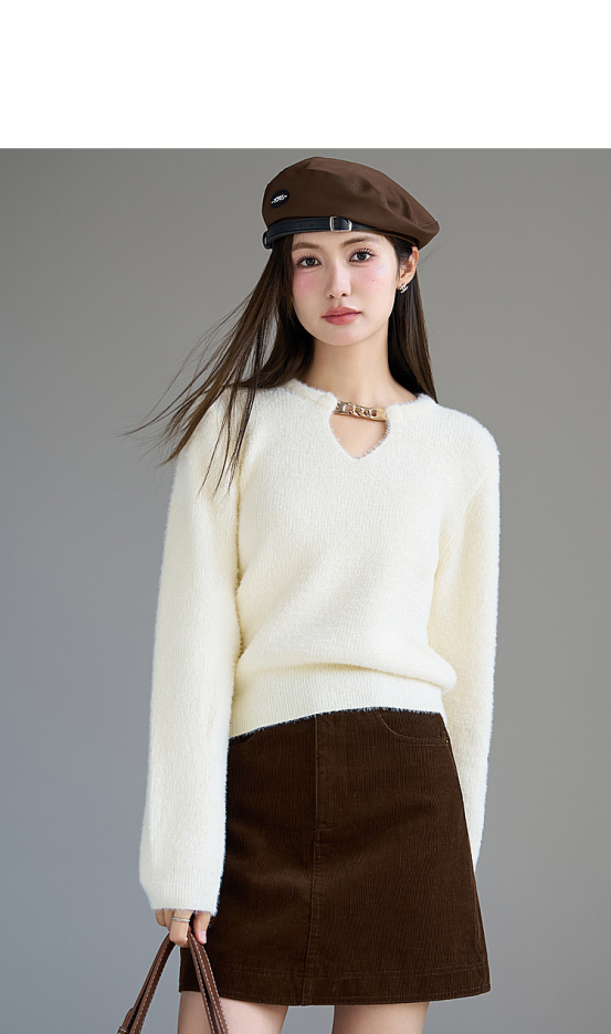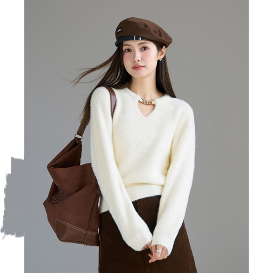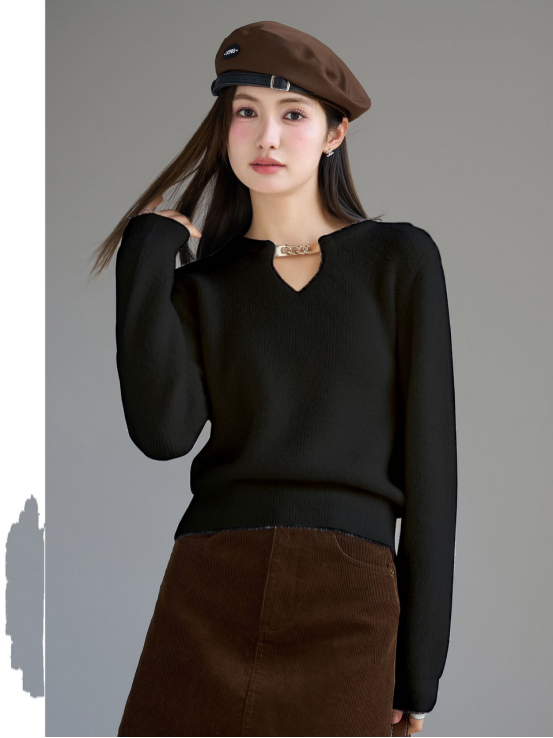 🥰🥰🥰【仿貂绒链条设计感显瘦针织上衣】😉1、仿貂绒材质柔软细腻,触感舒适🌸,给人温暖感 🌈~2、链条设计💨💨:为上衣增添了独特的时尚感和