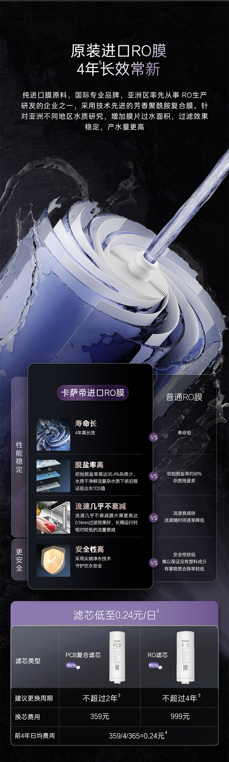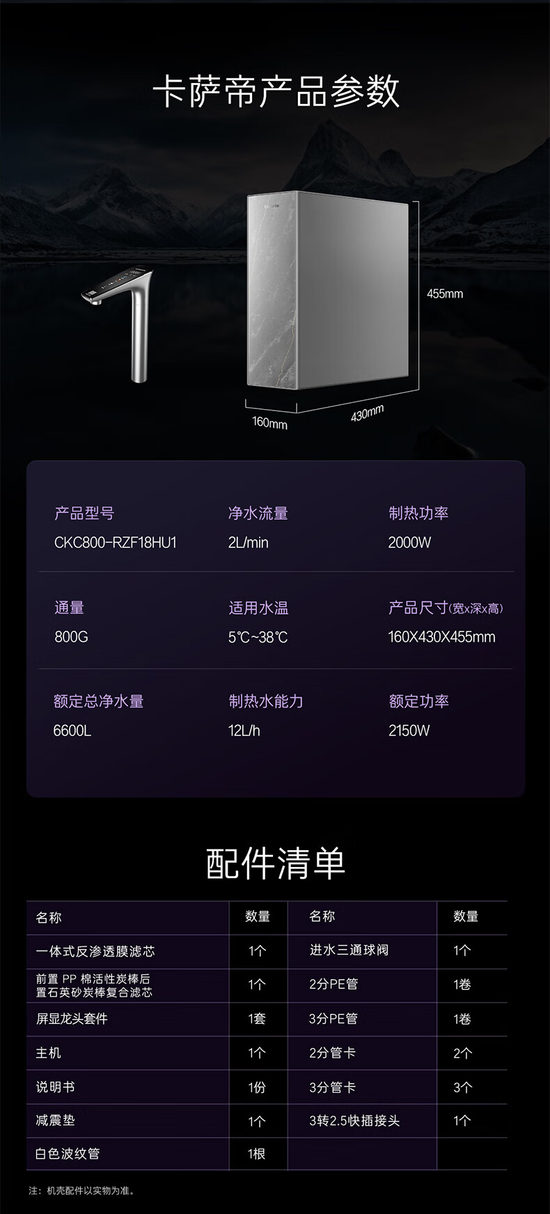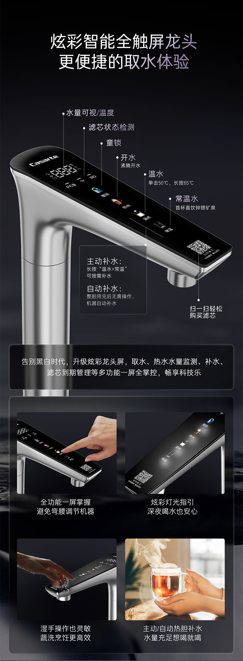 卡萨帝(Casarte)新品800G致境锌锶矿泉加热直饮机 家用即热零冷水净水器 厨下式净热一体机CKC800-RZF18HU1