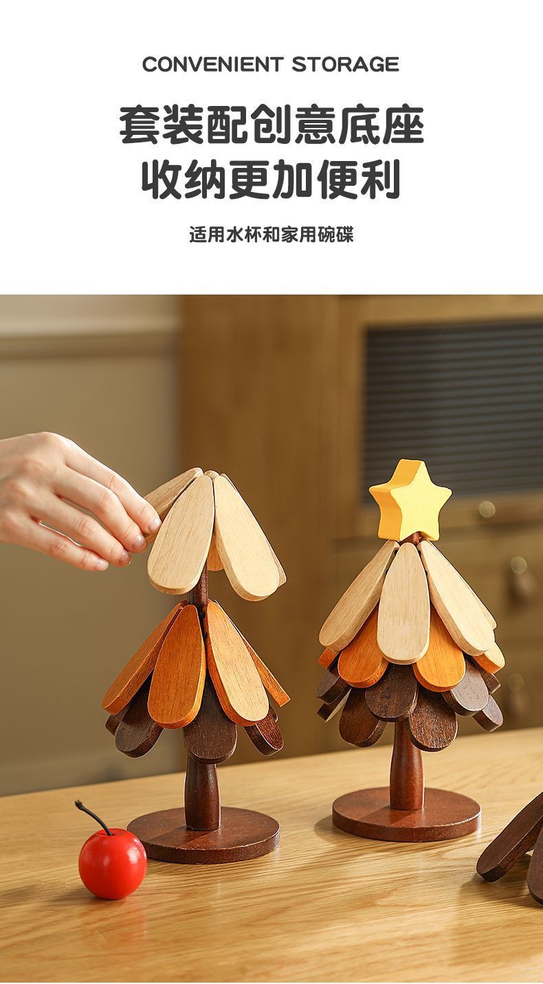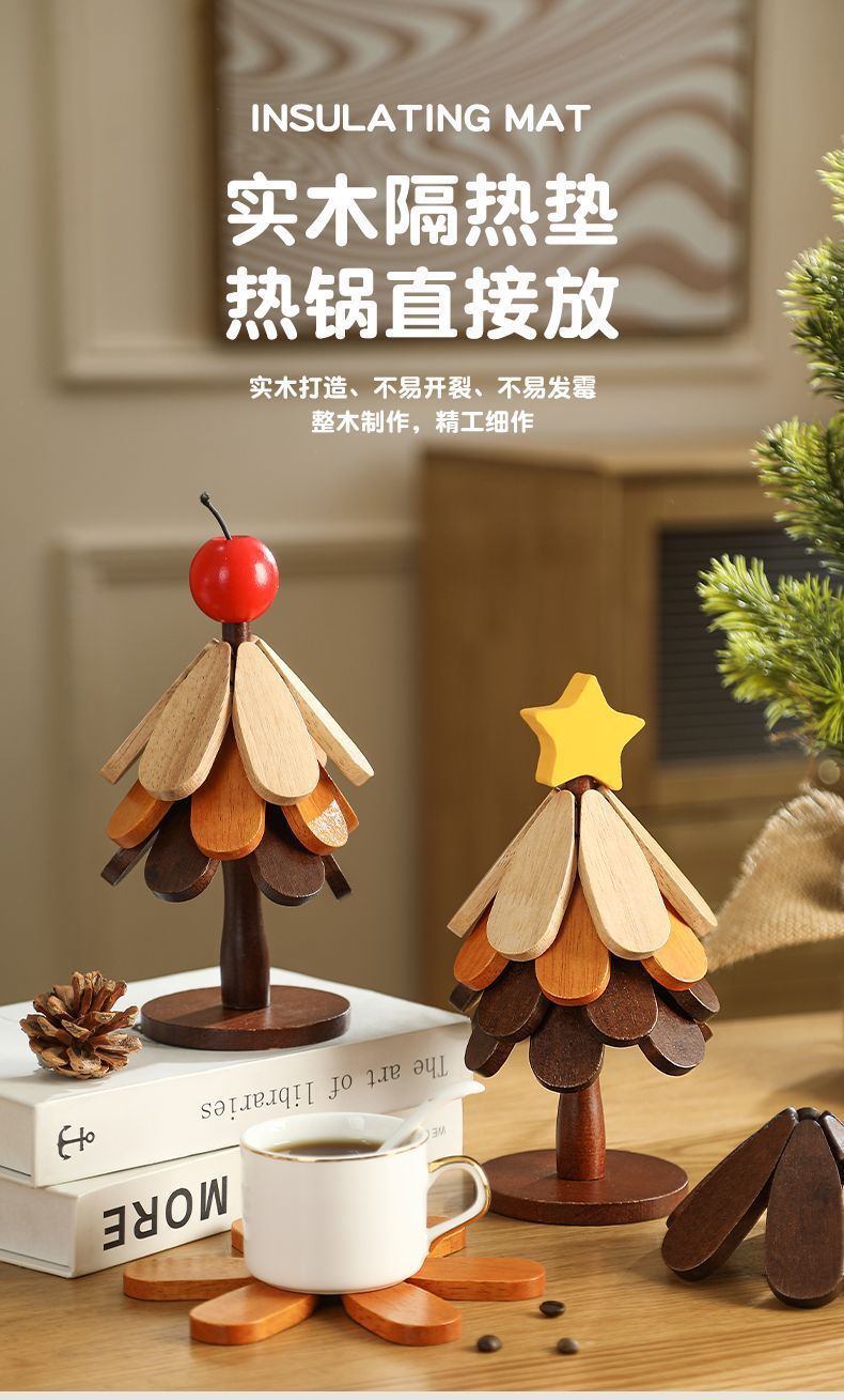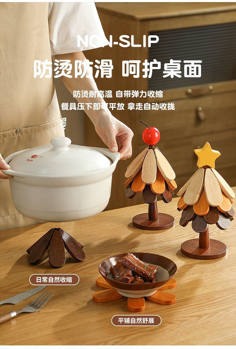 【防烫防滑呵护桌面❗️实木打造精工细作】隔热垫实木餐桌面防烫家用圣诞树杯垫竹制摆件圣诞树砂锅隔热实用。jb