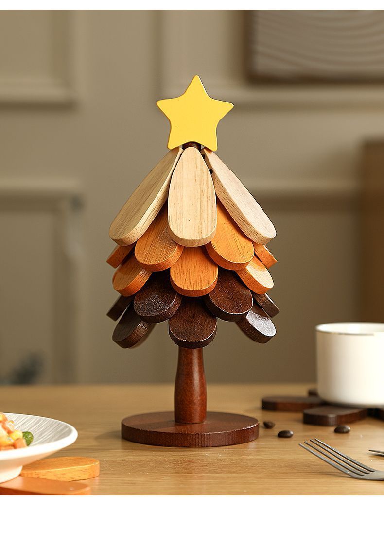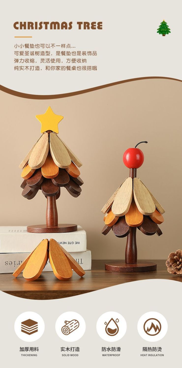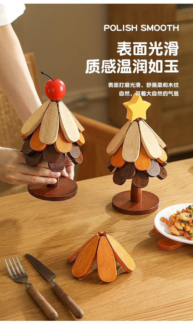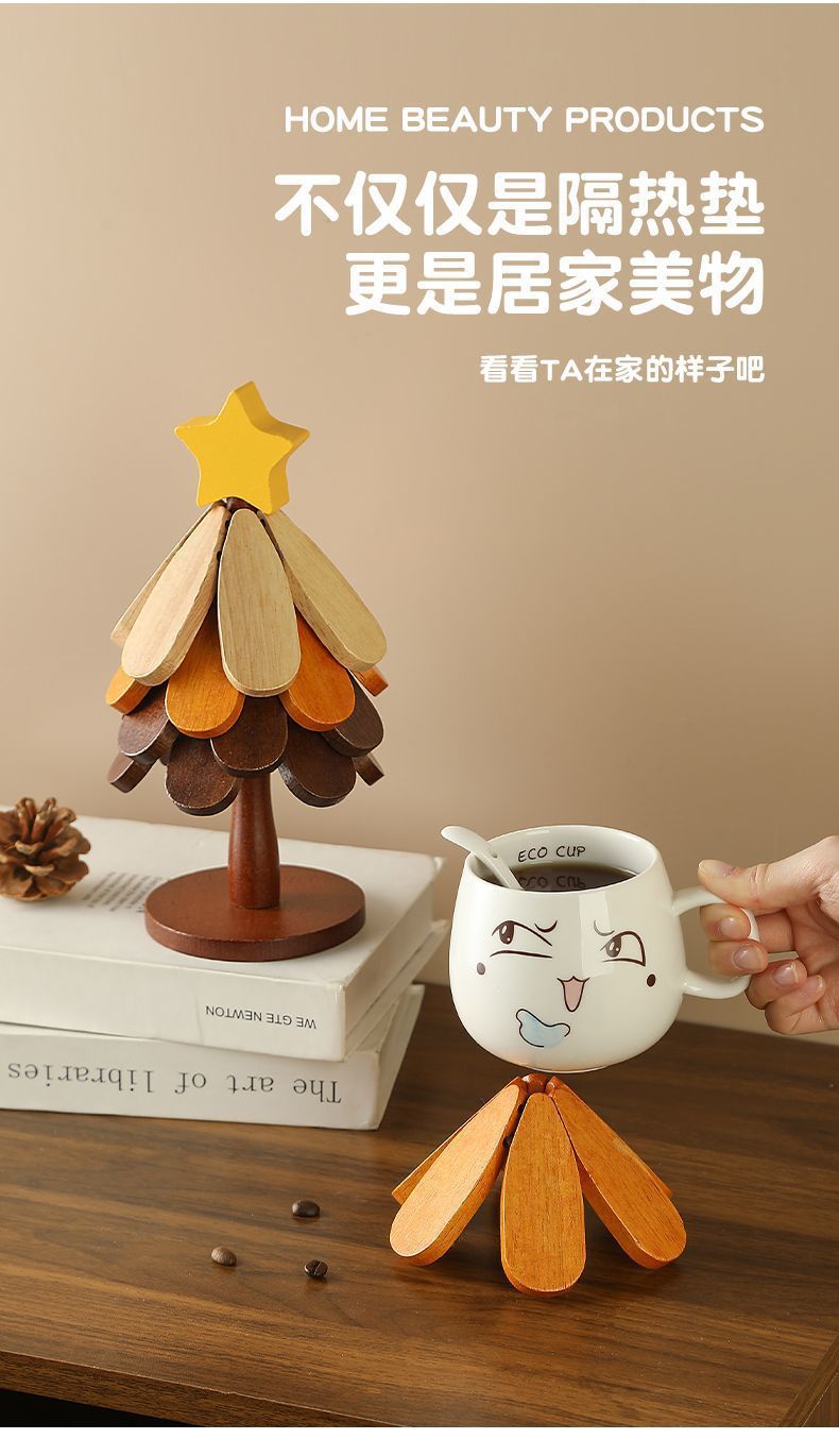 【防烫防滑呵护桌面❗️实木打造精工细作】隔热垫实木餐桌面防烫家用圣诞树杯垫竹制摆件圣诞树砂锅隔热实用。jb