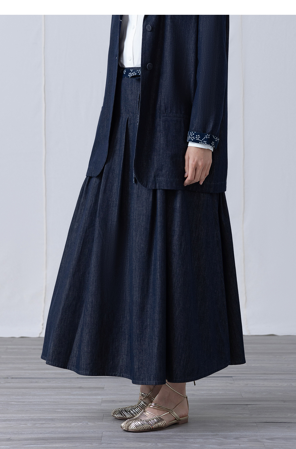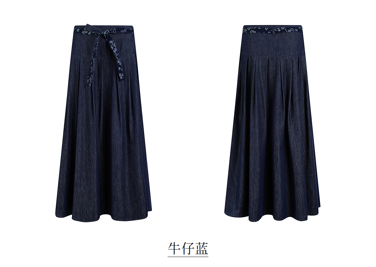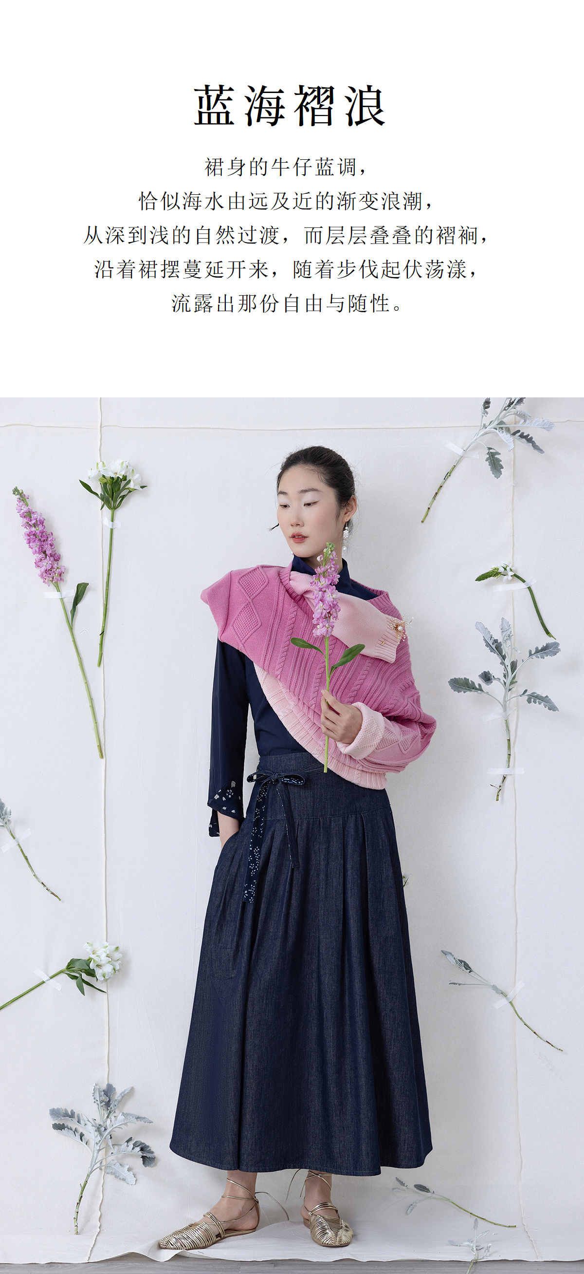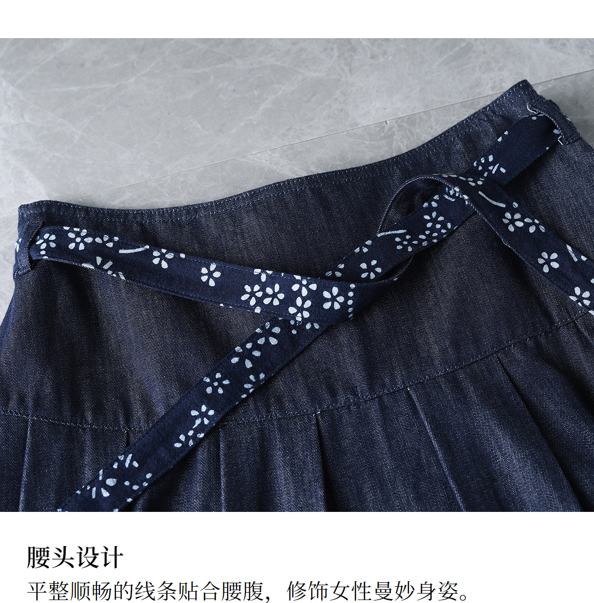 【林栖设计小店】棉混纺牛仔半身裙配蓝印花布腰带复古百搭2025夏季新品裙子女1952108
