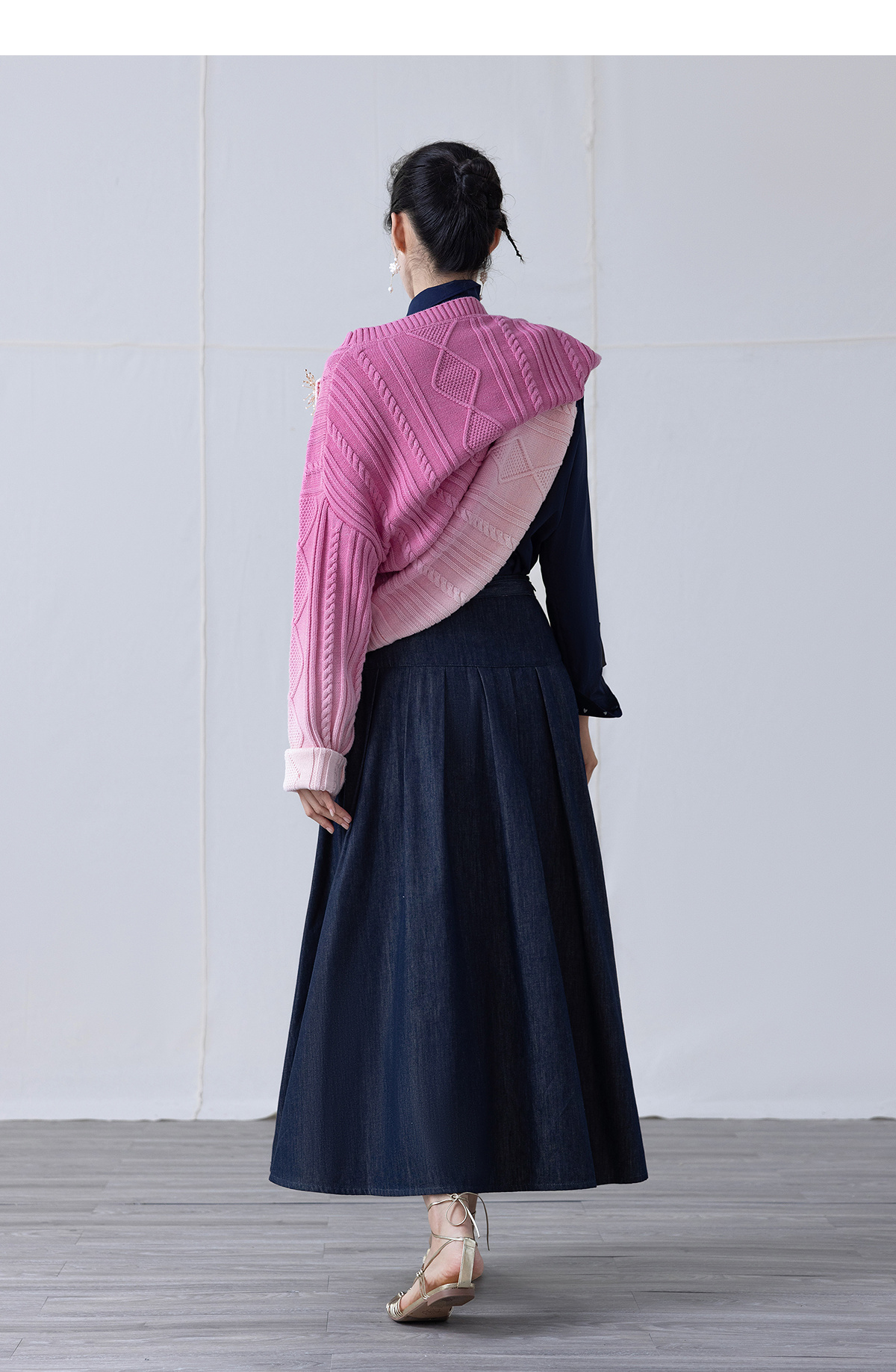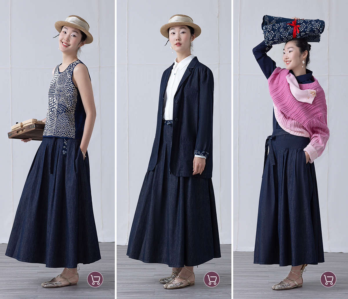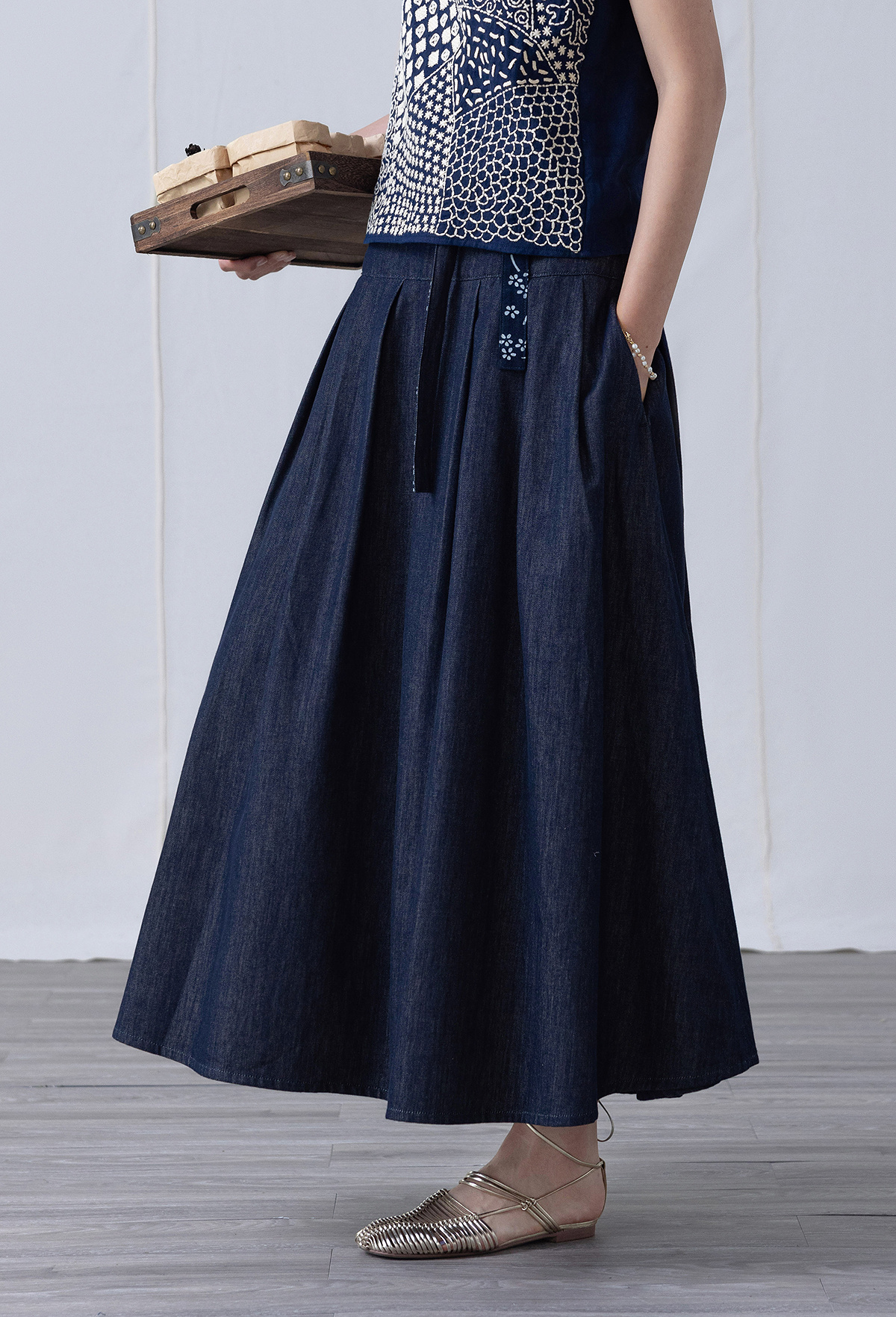 【林栖设计小店】棉混纺牛仔半身裙配蓝印花布腰带复古百搭2025夏季新品裙子女1952108