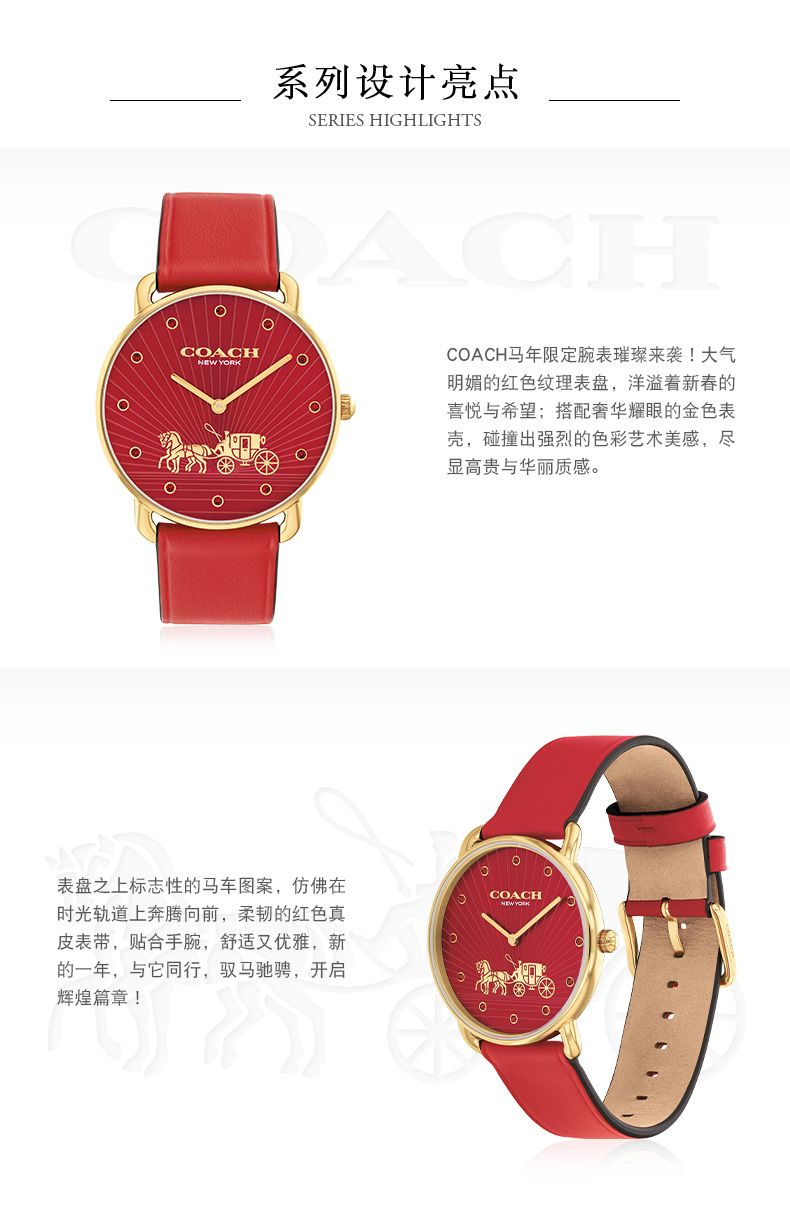 【马年限定】COACH/蔻驰 马上有钱ELLIOT系列马年新款生肖石英手表套盒14504615