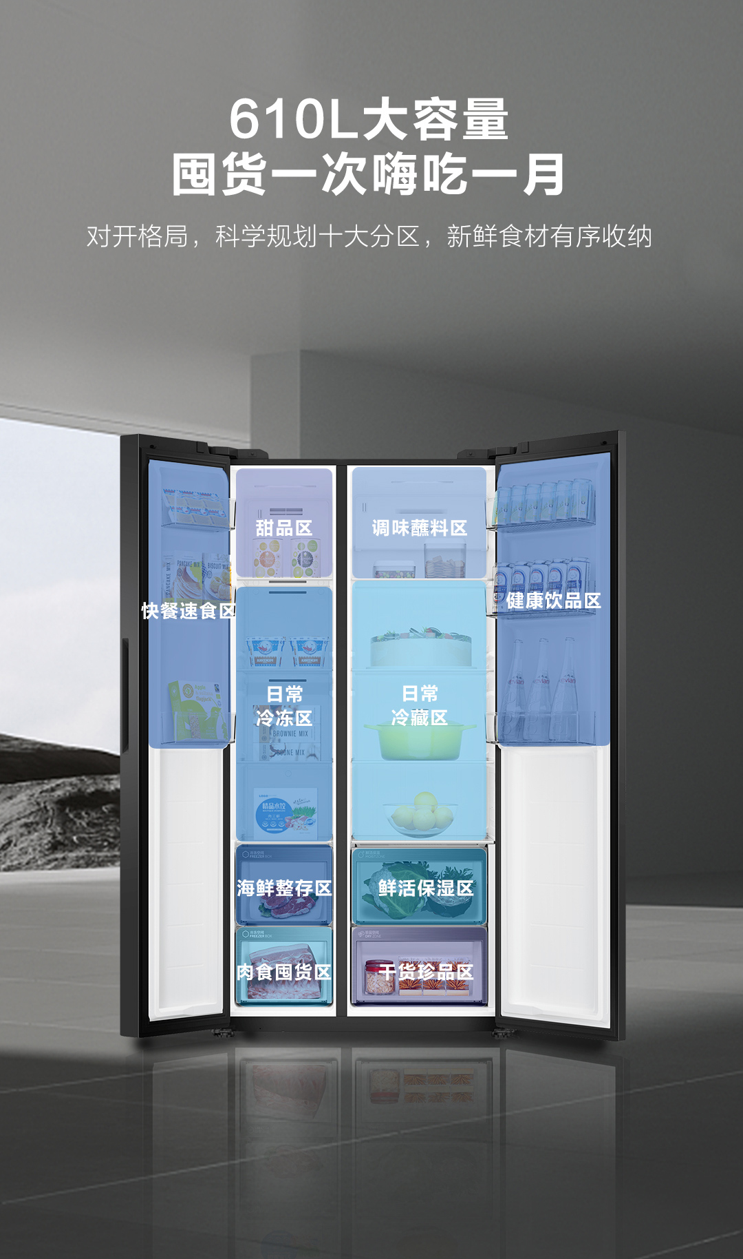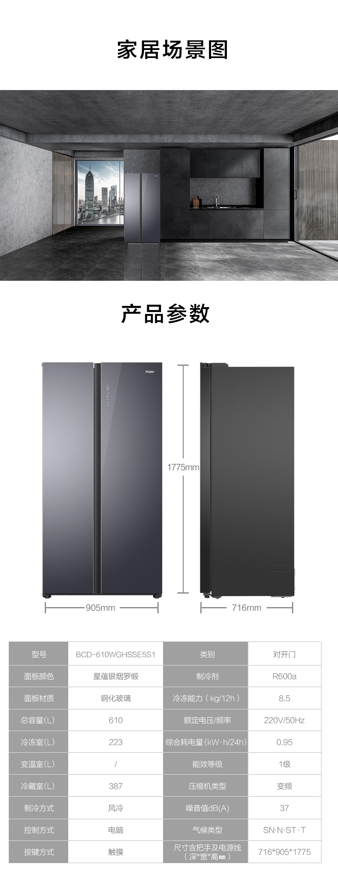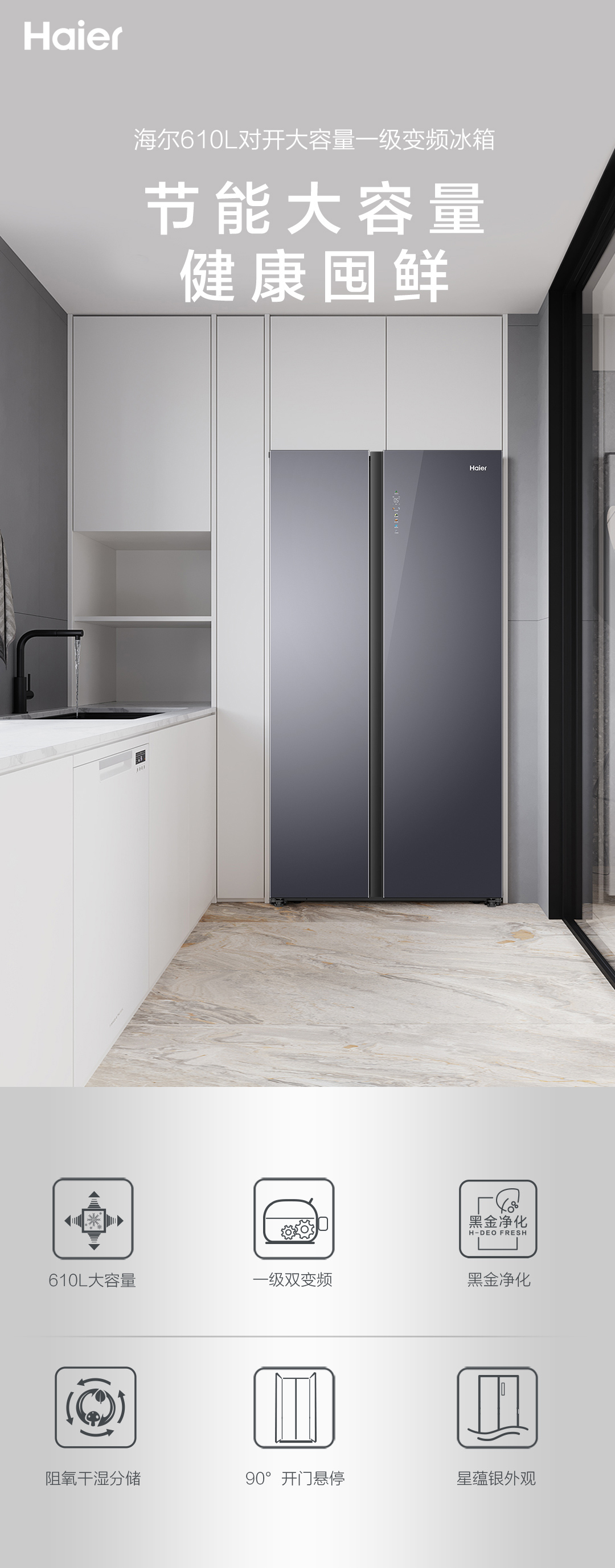 以旧换新-海尔冰箱对开门610L 一级双变频 阻氧干湿分储 90°悬停 玻璃面板 星蕴银BCD-610WGHSSE5S1